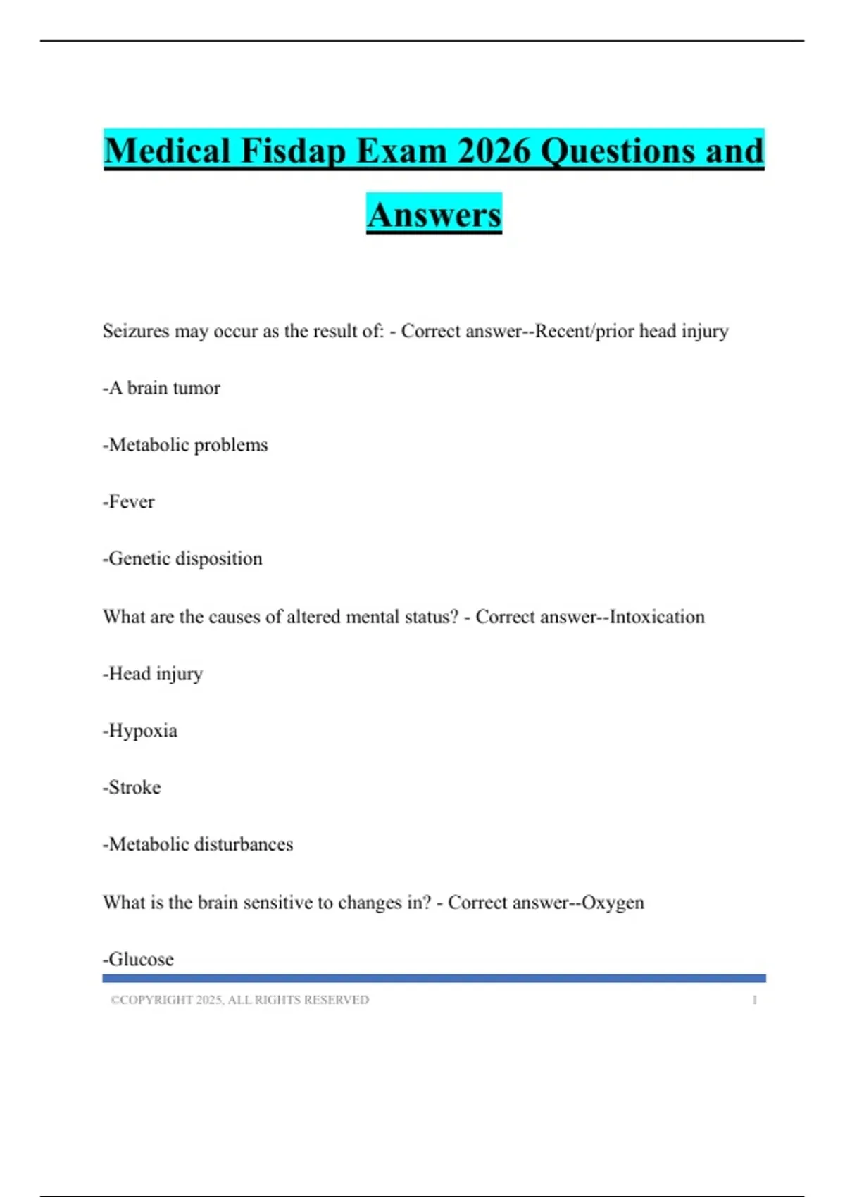 Medical Fisdap Exam 2026 Questions and Answers