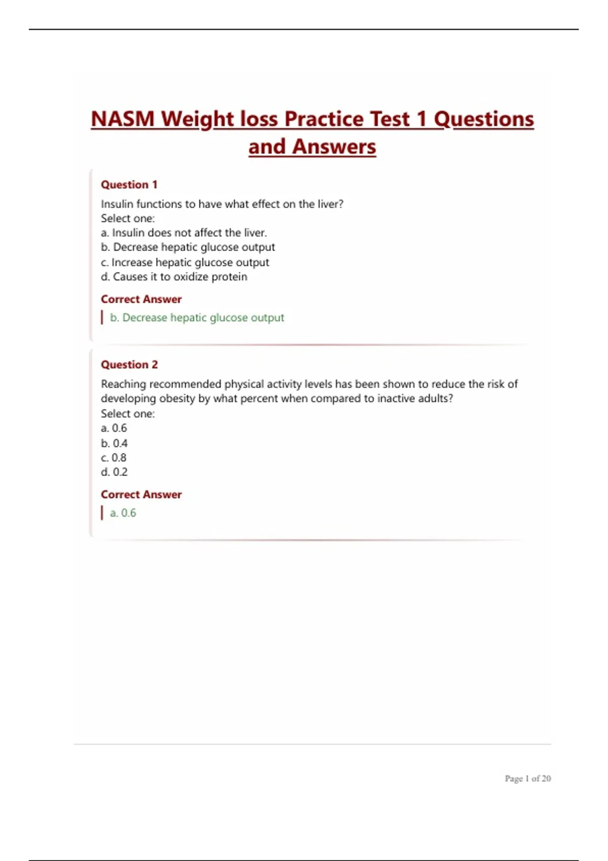 NASM Weight Loss Specialist Exam Questions and Answers.