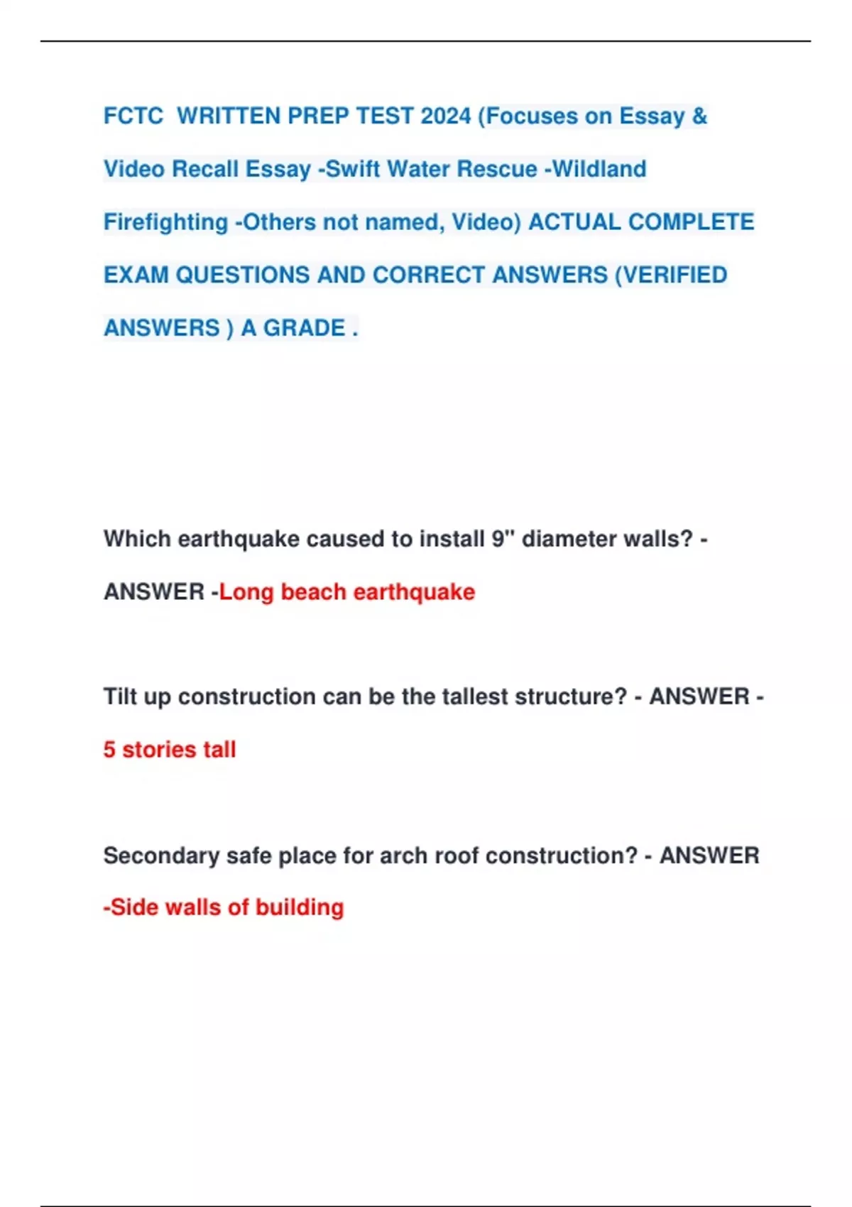 FCTC WRITTEN PREP TEST 2024 FCTC Written Test Prep Exam FCTC TEST PREP Exam Actual Complete Real Exam Questions & Correct Answers (Verified Answers) | Get It 100% Accurate!! Already Graded A+ | Newest Exam | Just Released!! FCTC Final Test Prep Exam Actual Complete Real Exam Questions & Correct Answers