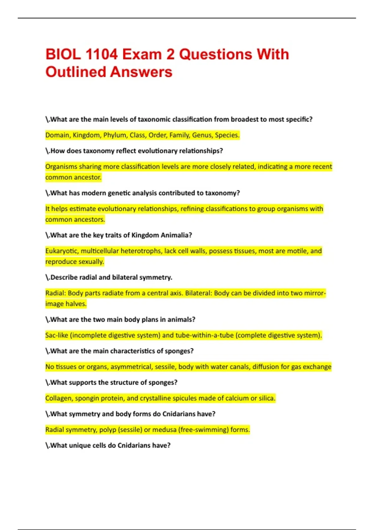 BIOL 1104 Exam 2 Questions With Outlined Answers || 100% pass 2 Exam (elaborations) BIOL 1104 Lab Exam 2 Questions With Complete Answers || 100% pass 3 Exam (elaborations) BIOL 1104 Exam 2 Questions With Correct Answers || 100% pass 4 Exam (elaborations) BIOL 1104 Exam 2 Notes Questions With Verified Answers 5 Exam (elaborations) BIOL 1104 Exam