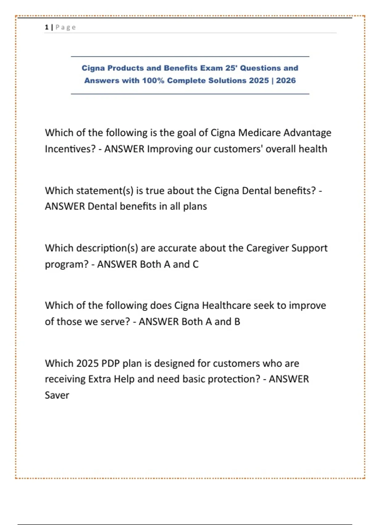 Cigna Healthspring Exam |QUESTIONS & ANSWERS| already graded A+ (COMPLETE BUNDLE) UPDATED 2025 | 2026