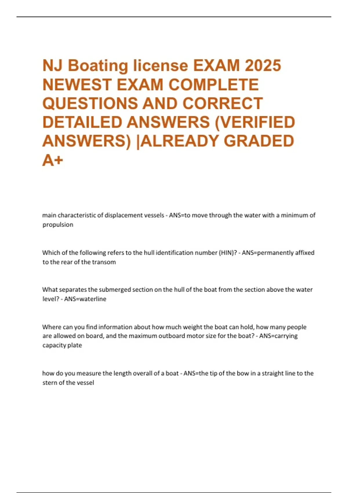 NJ Boating license EXAM 2025 NEWEST EXAM COMPLETE QUESTIONS AND CORRECT DETAILED ANSWERS (VERIFIED ANSWERS) |ALREADY GRADED A+||BRAND NEW 25025/2026!!
