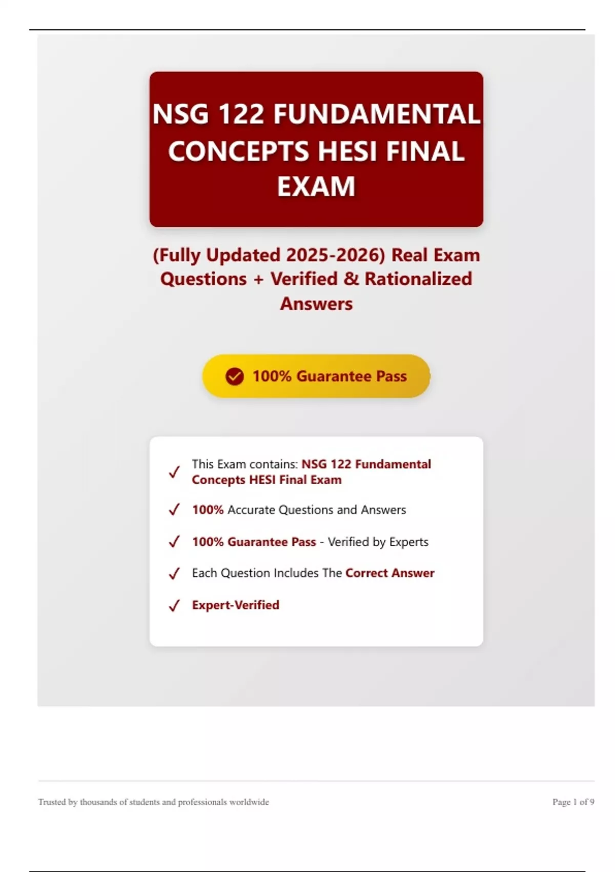 Get access to 100% verified exams, test banks, and study guides for ATI, NURSING, PMHNP, TNCC, USMLE, ACLS, WGU, and many more! We guarantee authentic, high-quality content designed to help you ace your exams with confidence. If you can’t find what you’re looking for, simply contact us — we’ll fetch it for you within minutes! ✅ Trusted by thousands of students ✅ Fast delivery & verified accuracy ✅ Guaranteed success on your next exam Buy with confidence — success starts here!