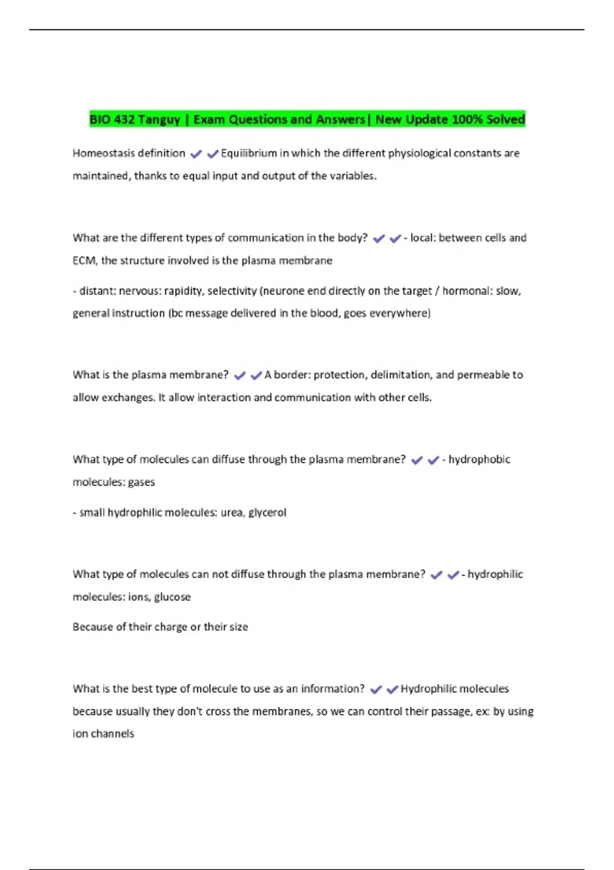 BIO 432 Hormones in plants| Exam Questions and Answers| New Update 100% Solved 2 Exam (elaborations) BIO 432 Plants Exam Questions and Answers| New Update 100% Solved 3 Exam (elaborations) BIO 432 Tanguy | Exam Questions and Answers| New Update 100% Solved