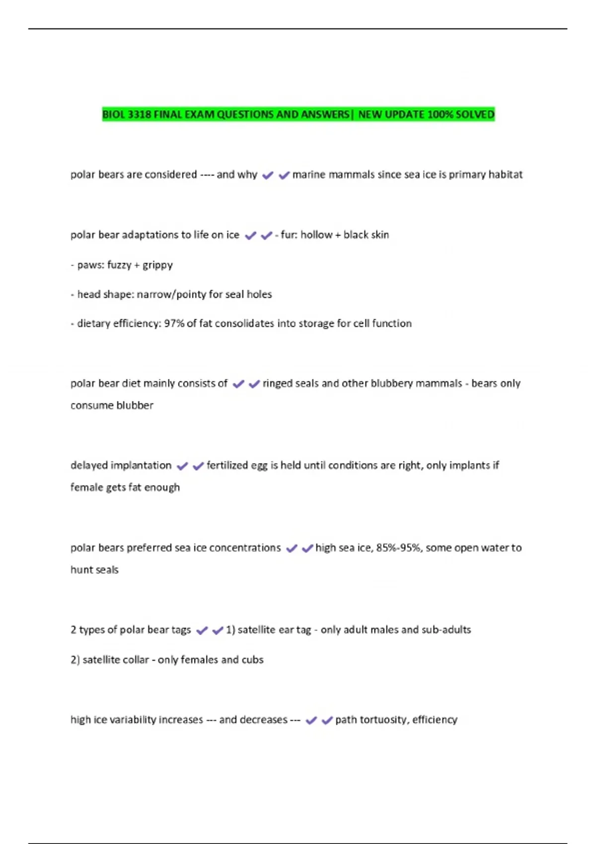 BEST PACKAGE-:: BIOL 3318 EXAMS WITH CORRECT ANSWERS