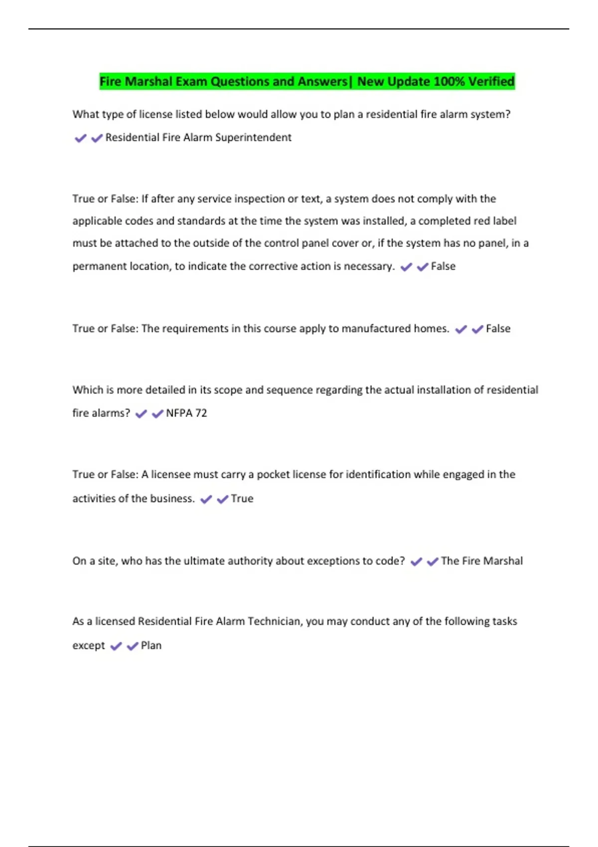 Fire Marshal Exam Questions and Answers| New Update 100% Verified 3 Exam (elaborations) Fire Marshal Exam Questions and Answers| New Update 100% Verified 4 Exam (elaborations) Fire Marshal Exam Questions and Answers| New Update 100% Verified