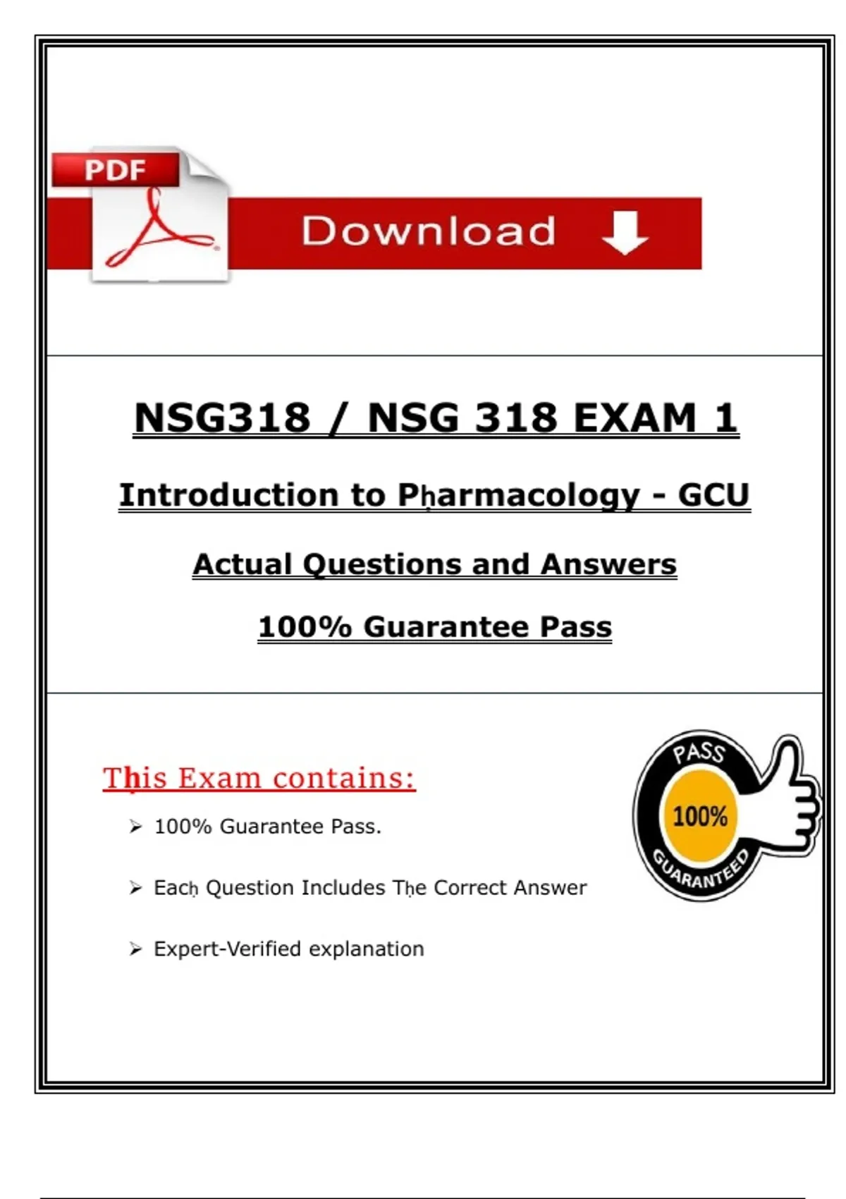 NSG 318 Exam 1 – Introduction to Pharmacology (Latest 2025 / 2026) – Actual Qs & Rationalized Ans – GCU