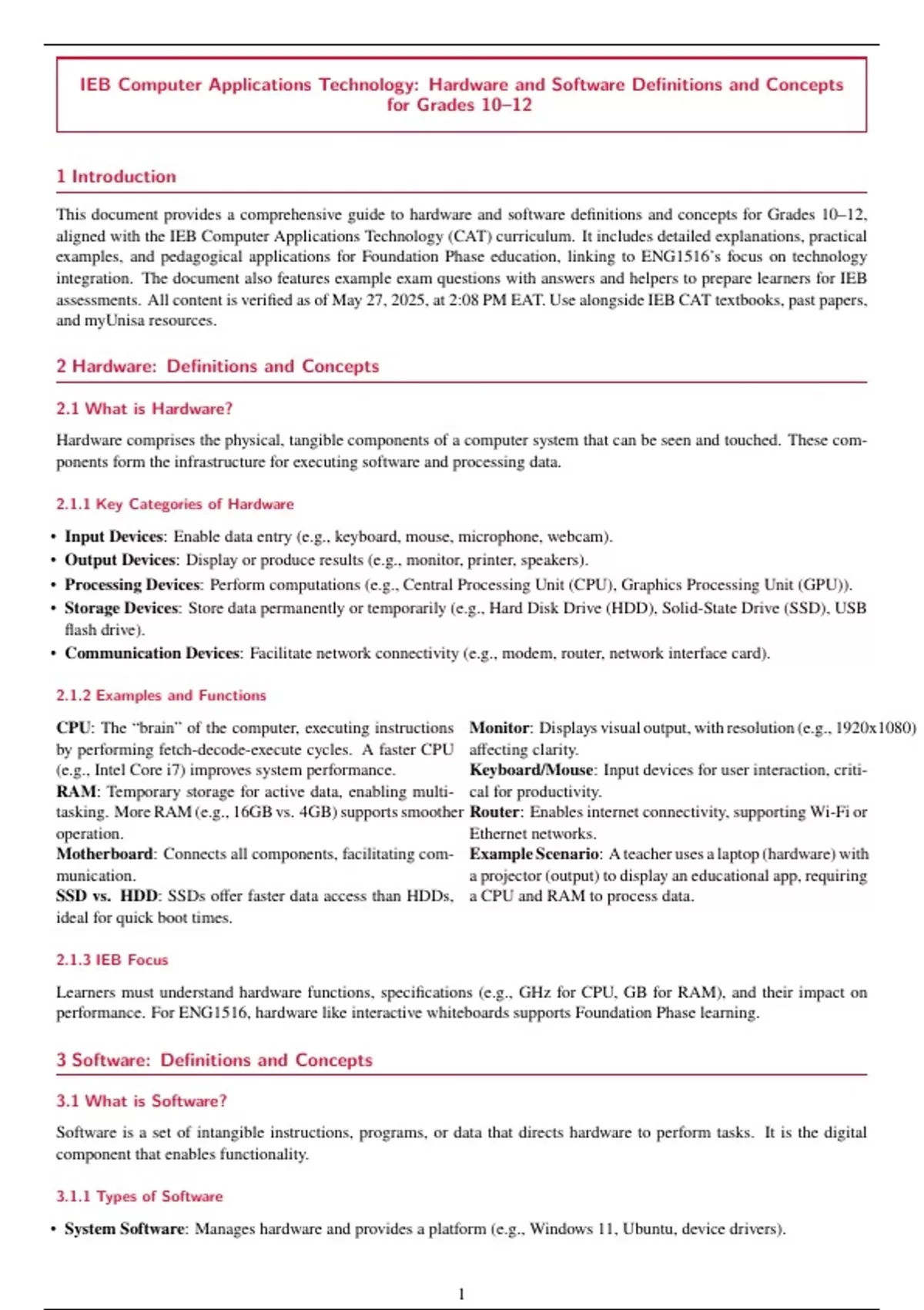Hardware & Software Explained– IEB Study Notes for Grades 10 to 12 1 Introduction