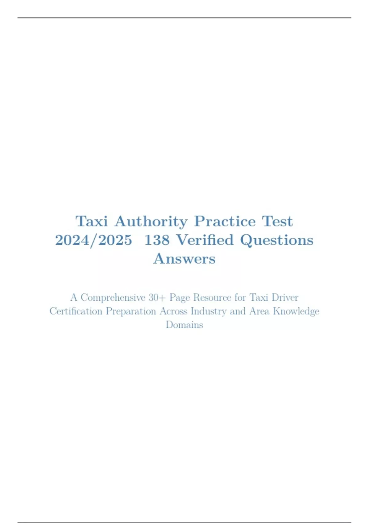 Taxi Authority Practice Test 2024/2025 138 Latest Questions & Answers BUNDLE