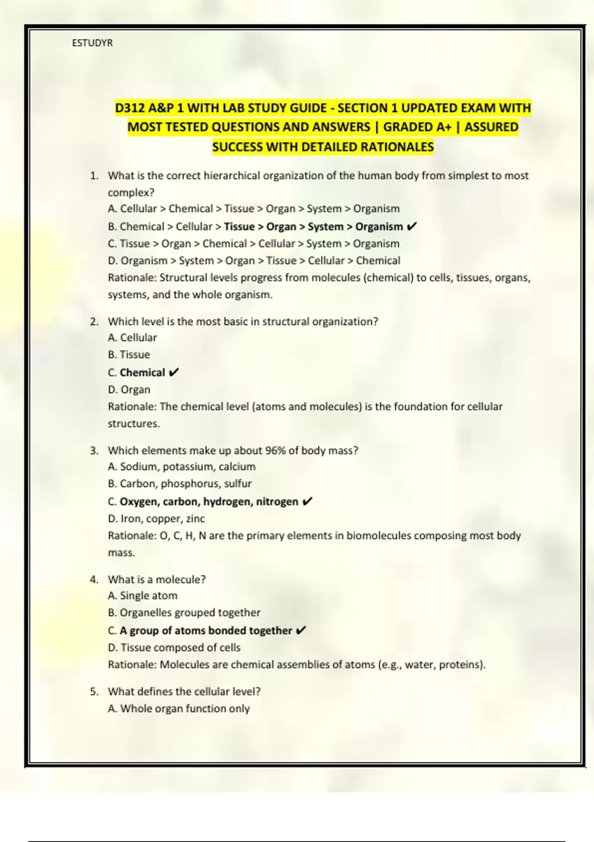 D312 A&P 1 WITH LAB STUDY GUIDE - SECTION 1, 2 & 3 || 2025 || PACKAGE DEAL