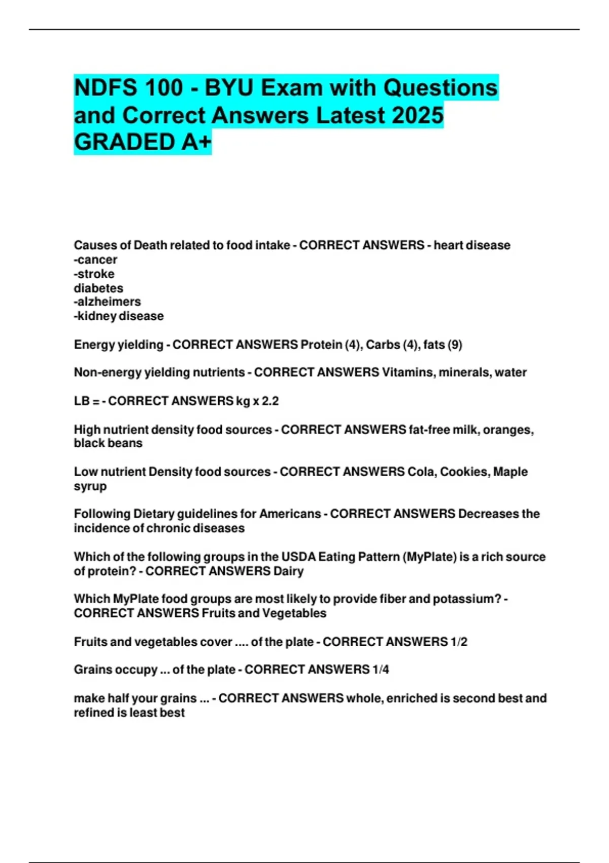 NDFS-100-BYU EXAM BUNDLE WITH COMPLETE SOLUTION LATEST GRADED A+