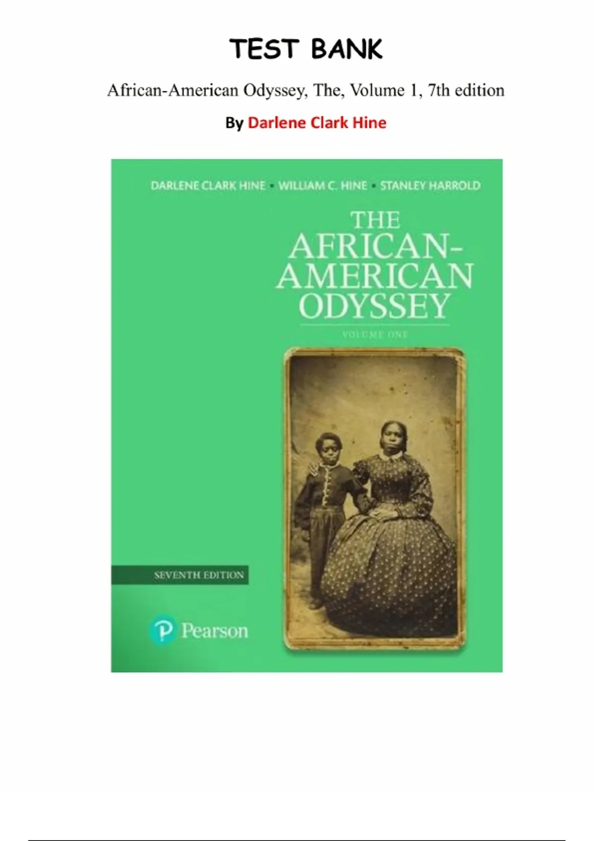 The African-American Odyssey, Combined Volume (7th Edition) – Darlene Clark Hine, William C. Hine & Stanley C. Harrold | Complete Test Bank for Chapters 1–24 (Package Deal)