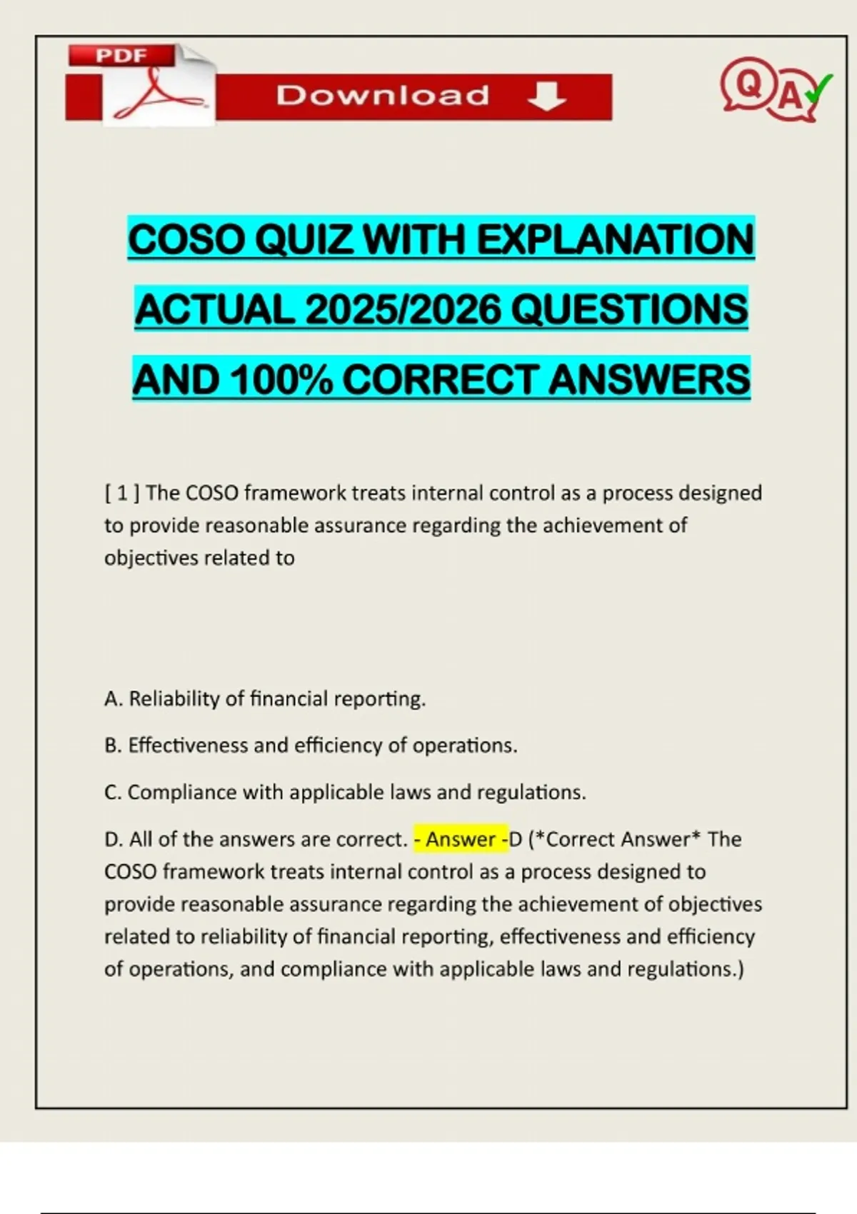 BUNDLED EXAMS::: COSO EXAMS ACTUAL 2025/2026 Q&A 100% PASS
