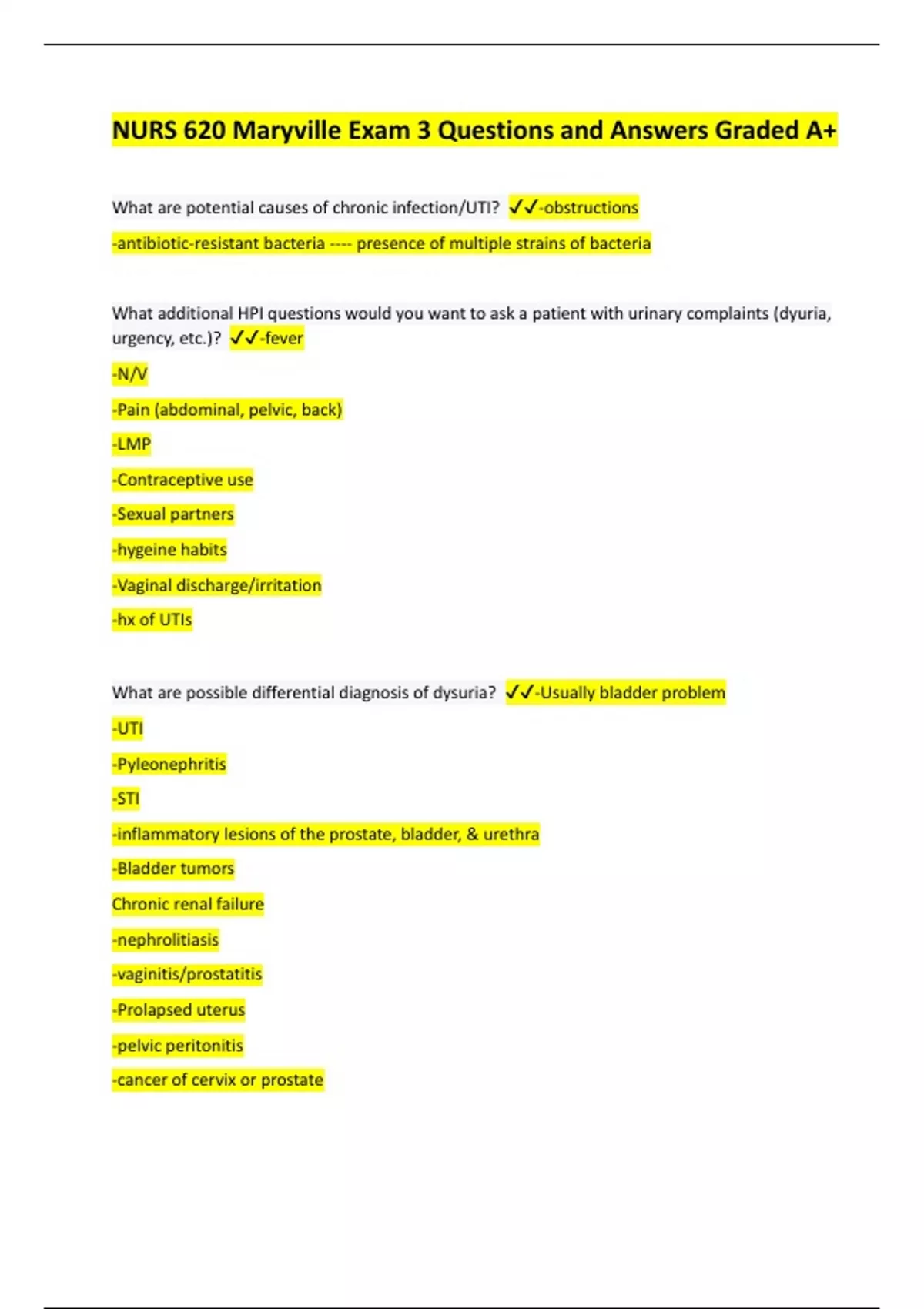 NURS 620 Maryville Exam 3 Questions and Answers Graded A+| 2024