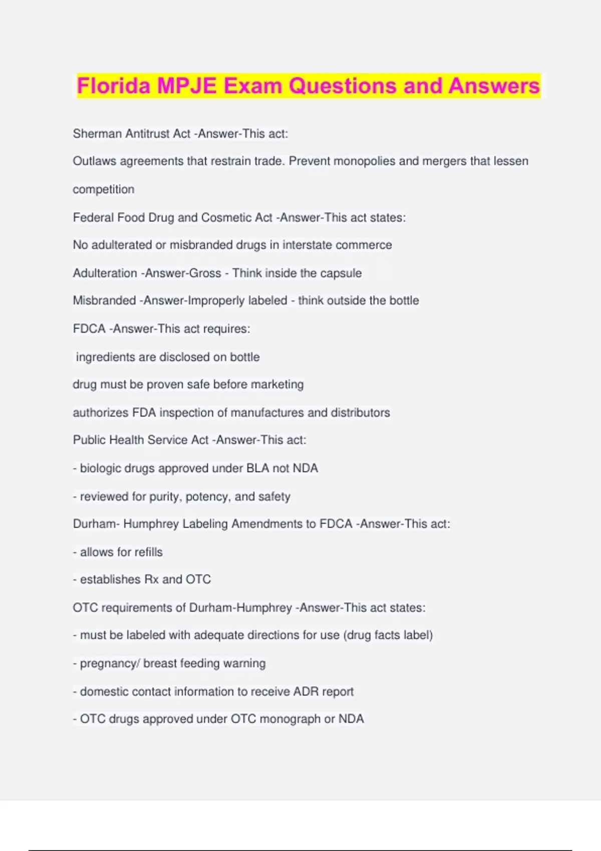 Florida MPJE Bundled Exams Questions and Answers 100% Pass |Verified and Updated