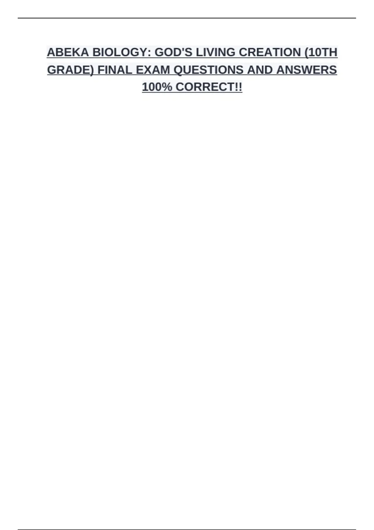 ABEKA 10TH GR. BIOLOGY FINAL EXAM BUNDLE(COMPLETE PACKAGE DEAL)QUESTIONS AND ANSWERS 100% CORRECTABEKA 10TH GR. BIOLOGY FINAL EXAM BUNDLE(COMPLETE PACKAGE DEAL)QUESTIONS AND ANSWERS 100% CORRECTABEKA 10TH GR. BIOLOGY FINAL EXAM BUNDLE(COMPLETE PACKAGE DEAL)QUESTIONS AND ANSWERS 100% CORRECTABEKA 10TH GR. BIOLOGY FINAL EXAM BUNDLE(COMPLETE PACKAGE D