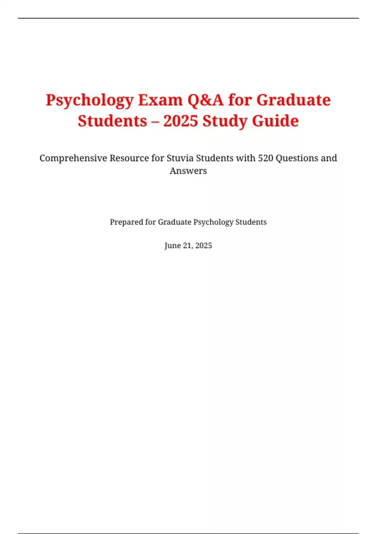 Psychology Exam Q&AforGraduate Students– 2025 Study Guide DOUBLE PACKAGE