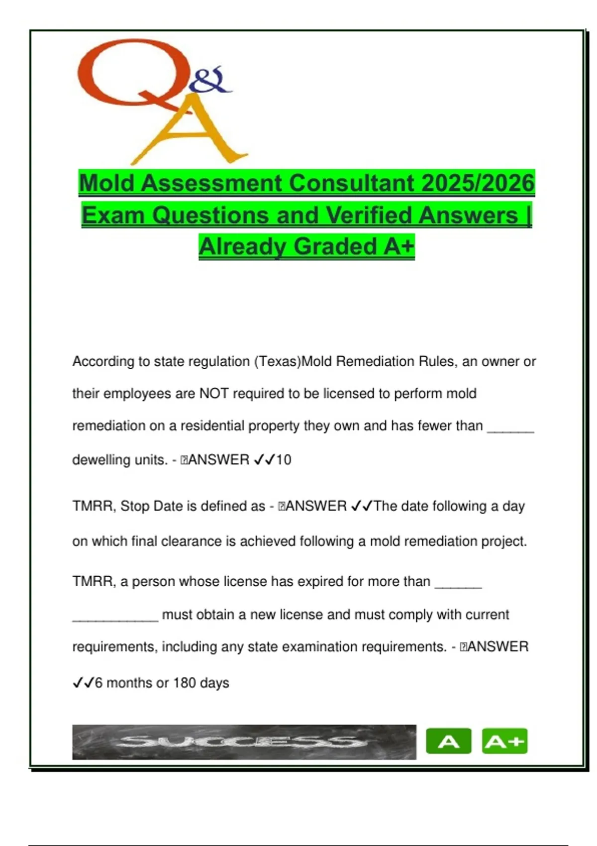 Mold Assessment Consultant – Texas TMRR | 125 Exam Questions & Answers | Environmental Health & Remediation | 2025/2026