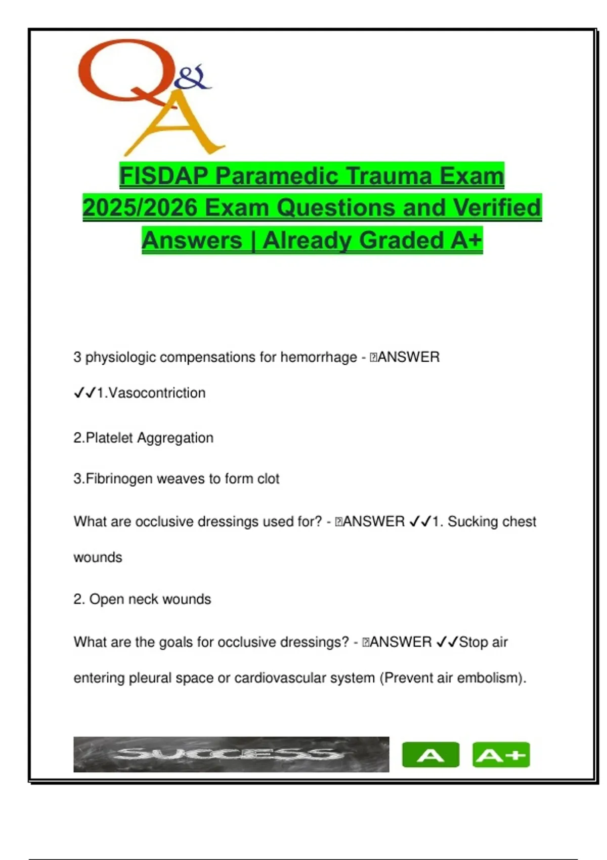 FISDAP PARAMEDIC TRAUMA EXAM COMPLETE PACKAGE DEAL