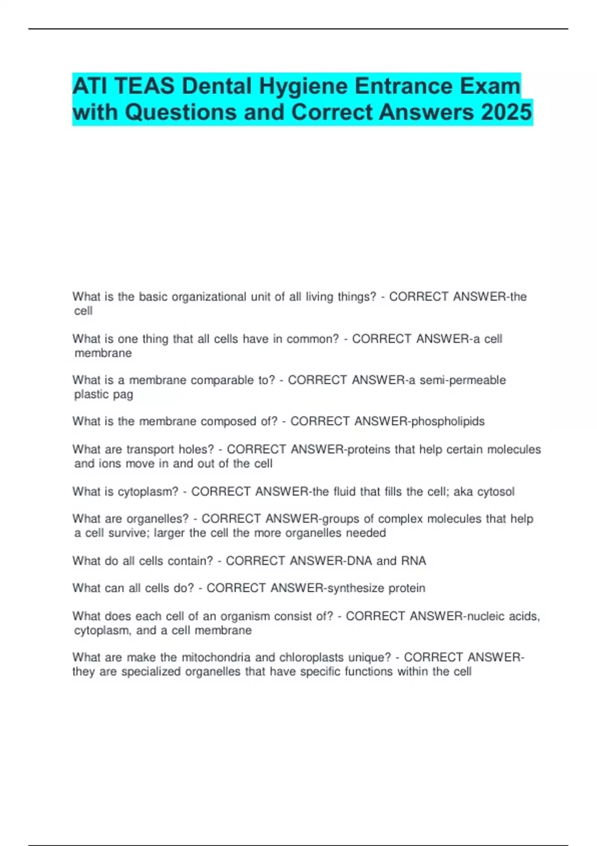 ATI TEAS EXAM BUNDLE WITH COMPLETE SOLUTIONS LATEST GRADED A+