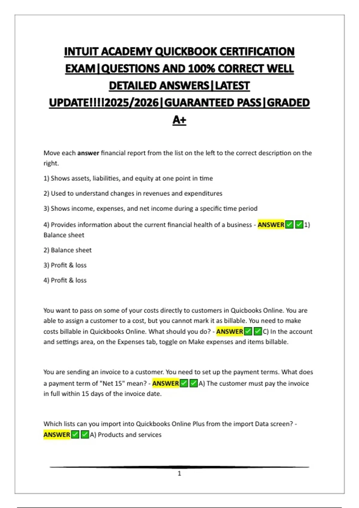 INTUIT ACADEMY QUICKBOOK CERTIFICATION EXAM|QUESTIONS AND 100% CORRECT WELL DETAILED ANSWERS|LATEST UPDATE!!!!2025/2026|GUARANTEED PASS|GRADED A+