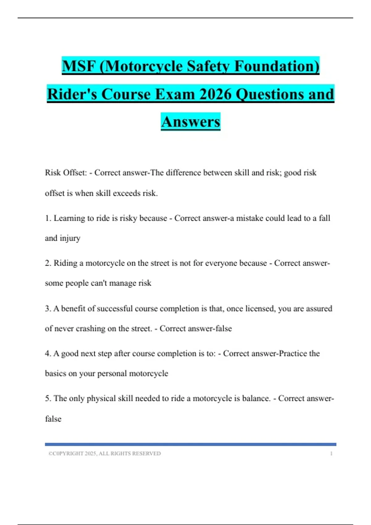MSF Motorcycle Safety Foundation eCourse Exam 2026 Questions and Answers
