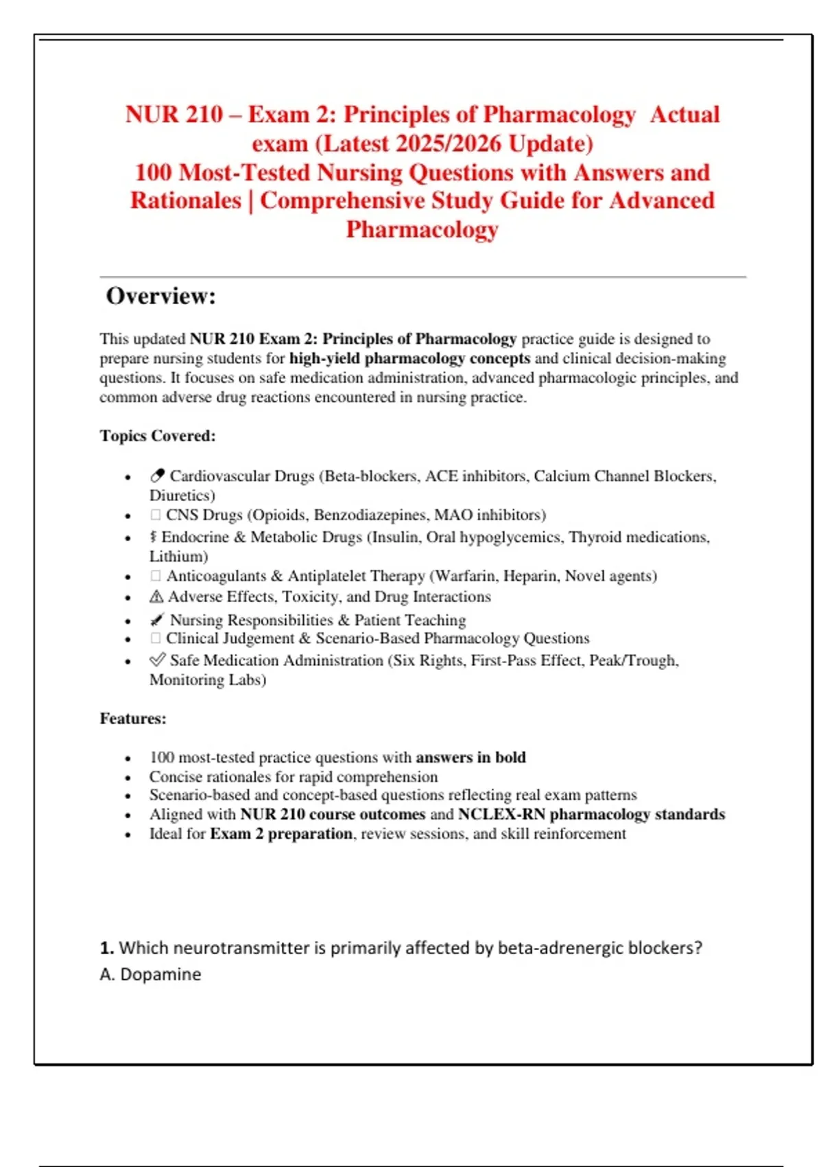 Updated exams .Actual tests 100% verified.ATI,NURSING,PMHNP,TNCC,USMLE,ACLS,WGU AND ALL EXAMS guaranteed success.Here, you will find everything you need in NURSING EXAMS AND TESTBANKS.Contact us, to fetch it for you in minutes if we do not have it in this shop.BUY WITHOUT DOUBT!!!!Always leave a review after purchasing any document so as to make sure our customers are 100% satisfied. **Ace Your Exams with Confidence!**