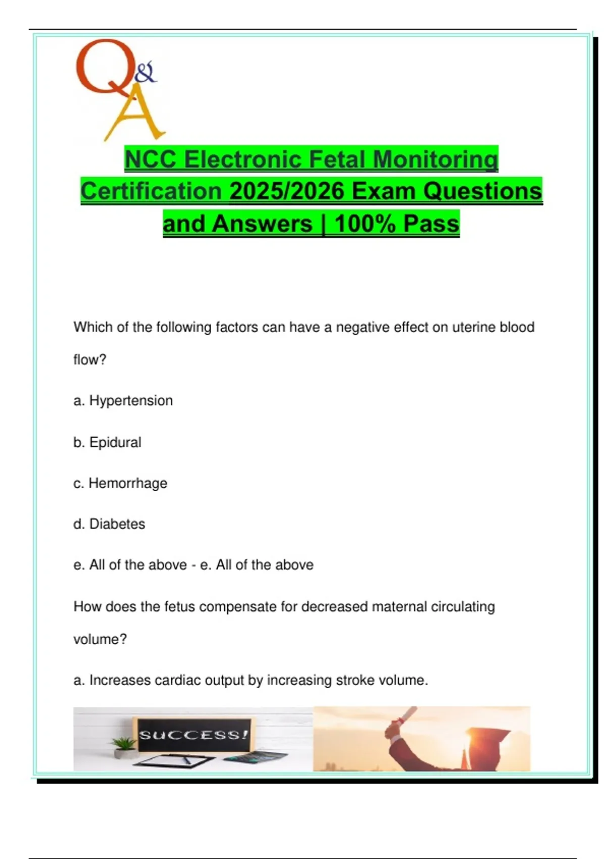 NCC Electronic Fetal Monitoring Certification 2025 – 100+ Q&A for FHR Patterns, Uterine Activity, Intrapartum Care & NICHD Criteria
