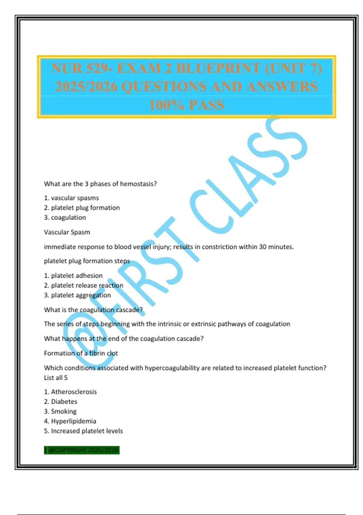 NUR 529- EXAM 2 BLUEPRINT (UNIT 7) 2025/2026 QUESTIONS AND ANSWERS 100% PASS