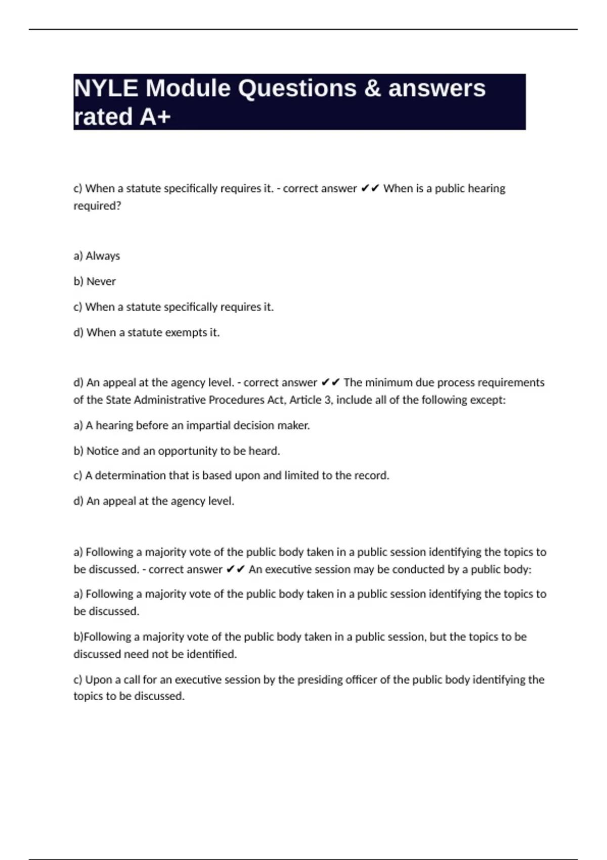 1 Exam (elaborations) NYLE - Matrimonial and Family with correct answers (verified) 2 Exam (elaborations) NYLE - Criminal Law and Procedure with verified answers 3 Exam (elaborations) NYLE Outline questions & correct answers already passed 4 Exam (elaborations) NYLE – Torts questions with complete solutions passed 5 Exam (elaborations) NYLE QUE