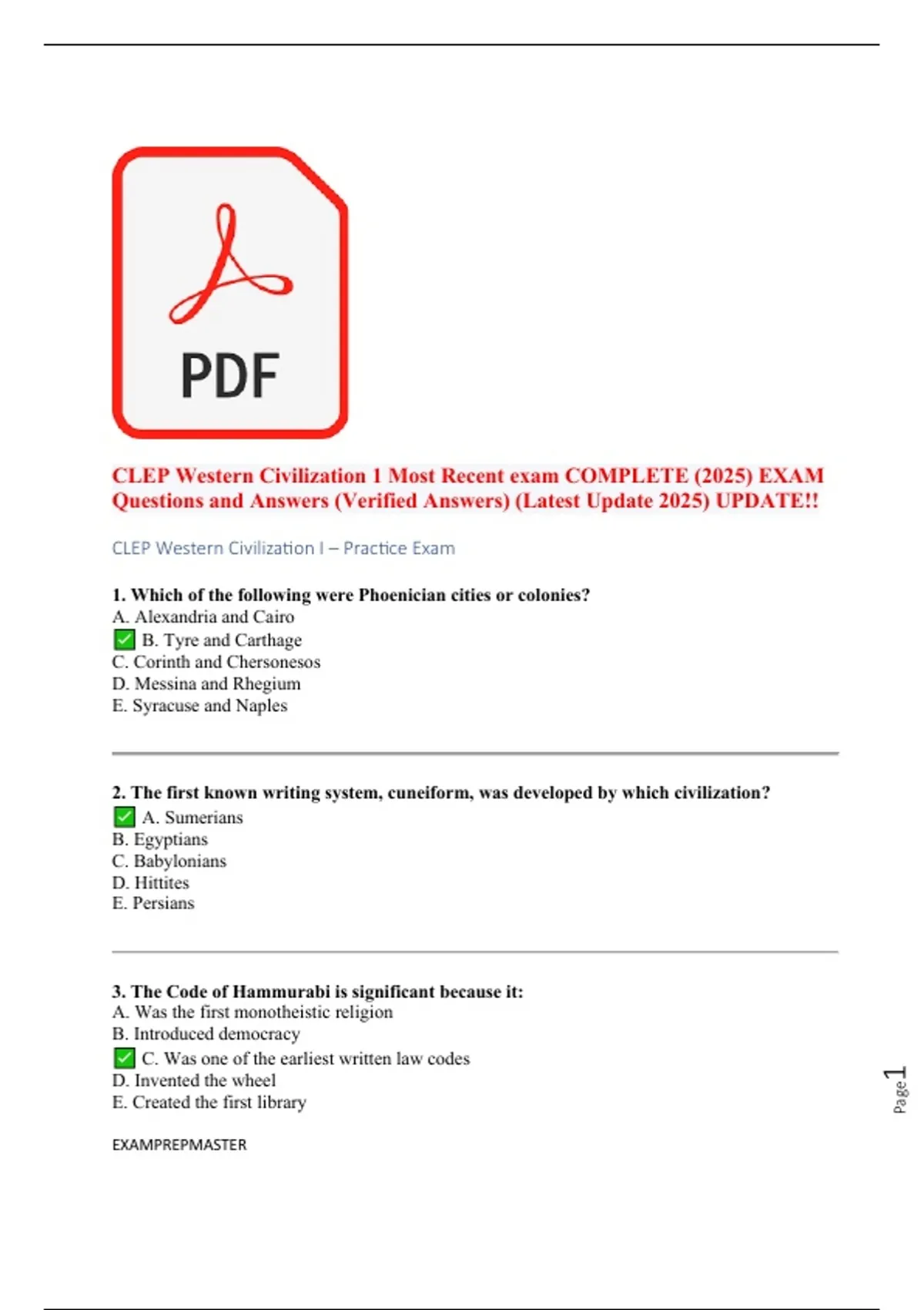 1 Exam (elaborations) CLEP Western Civilization I Exam | Complete Questions & Verified Answers | Latest Update 2026 2 Exam (elaborations) CLEP Western Civilization I Exam | Complete Questions & Verified Answers | Latest Update 2026 3 Exam (elaborations) CLEP Western Civilization I Exam | Complete Questions & Verified Answers | Latest Update 2026