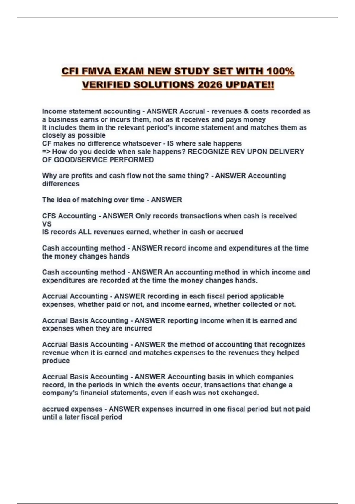 CFI FMVA FLASHCARDS EXAM QUESTIONS AND CORRECT ANSWERS 2026 UPDATE!!