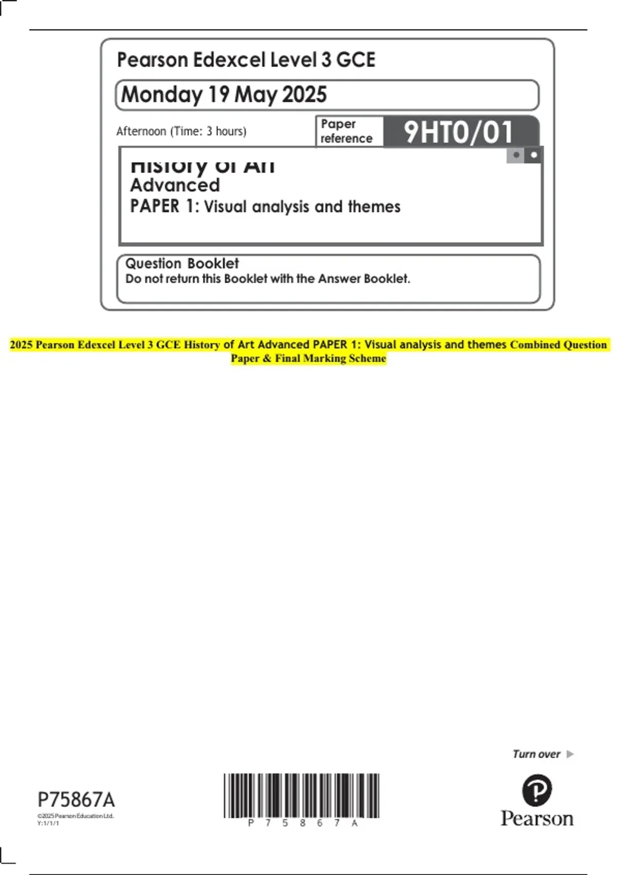 2025 Pearson Edexcel Level 3 GCE History of Art Advanced PAPER 2: Periods Combined Question Paper & Final Marking Scheme 2 Exam (elaborations) 2025 Pearson Edexcel Level 3 GCE History of Art Advanced PAPER 1: Visual analysis and themes Combined Question Paper & Final Marking Scheme