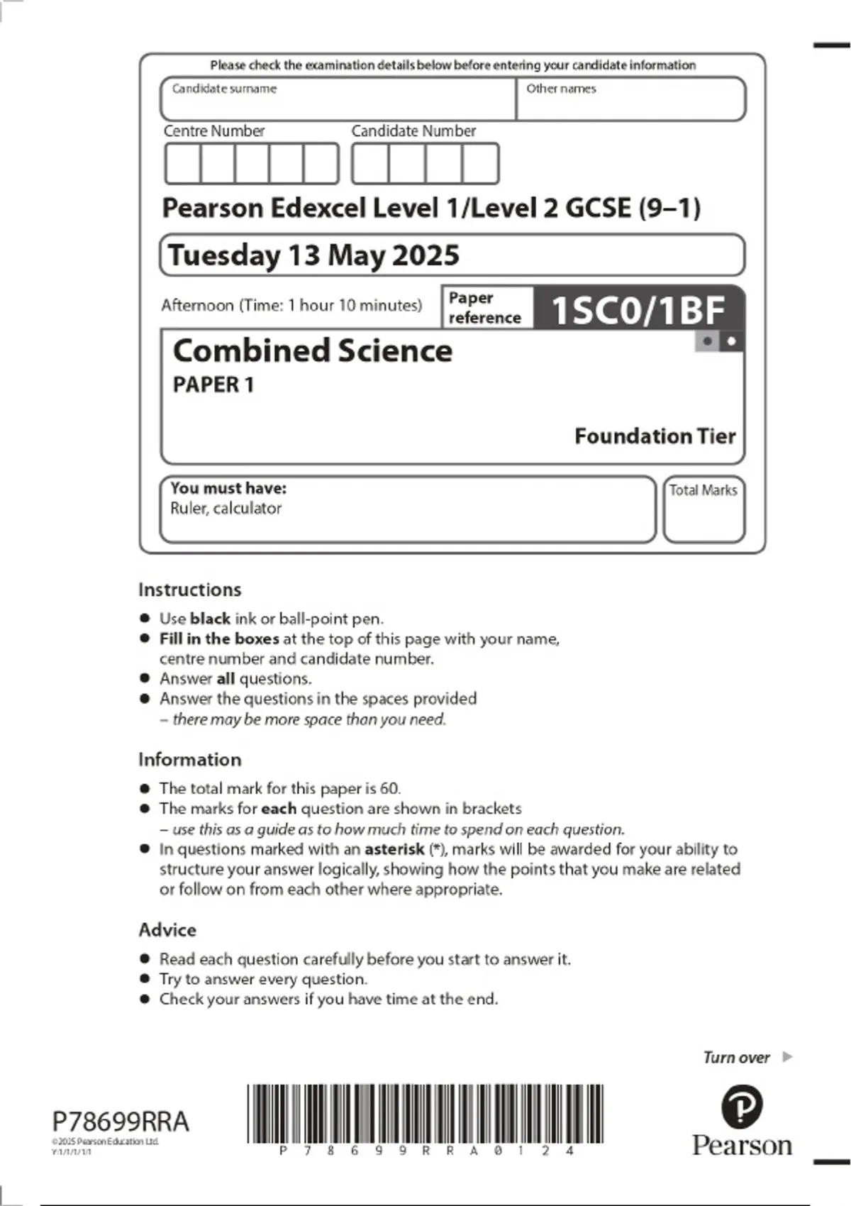 2025 Pearson Edexcel Level 1/Level 2 GCSE (9–1) Combined Science PAPER 3 Higher Tier Combined Question Paper and Final Marking Scheme 8 Exam (elaborations) 2025 Pearson Edexcel Level 1/Level 2 GCSE (9–1) Combined Science PAPER 6 Foundation Tier Combined Question Paper and Final Marking Scheme 9 Exam (elaborations) 2025 Pearson Edexcel Level 1/Lev