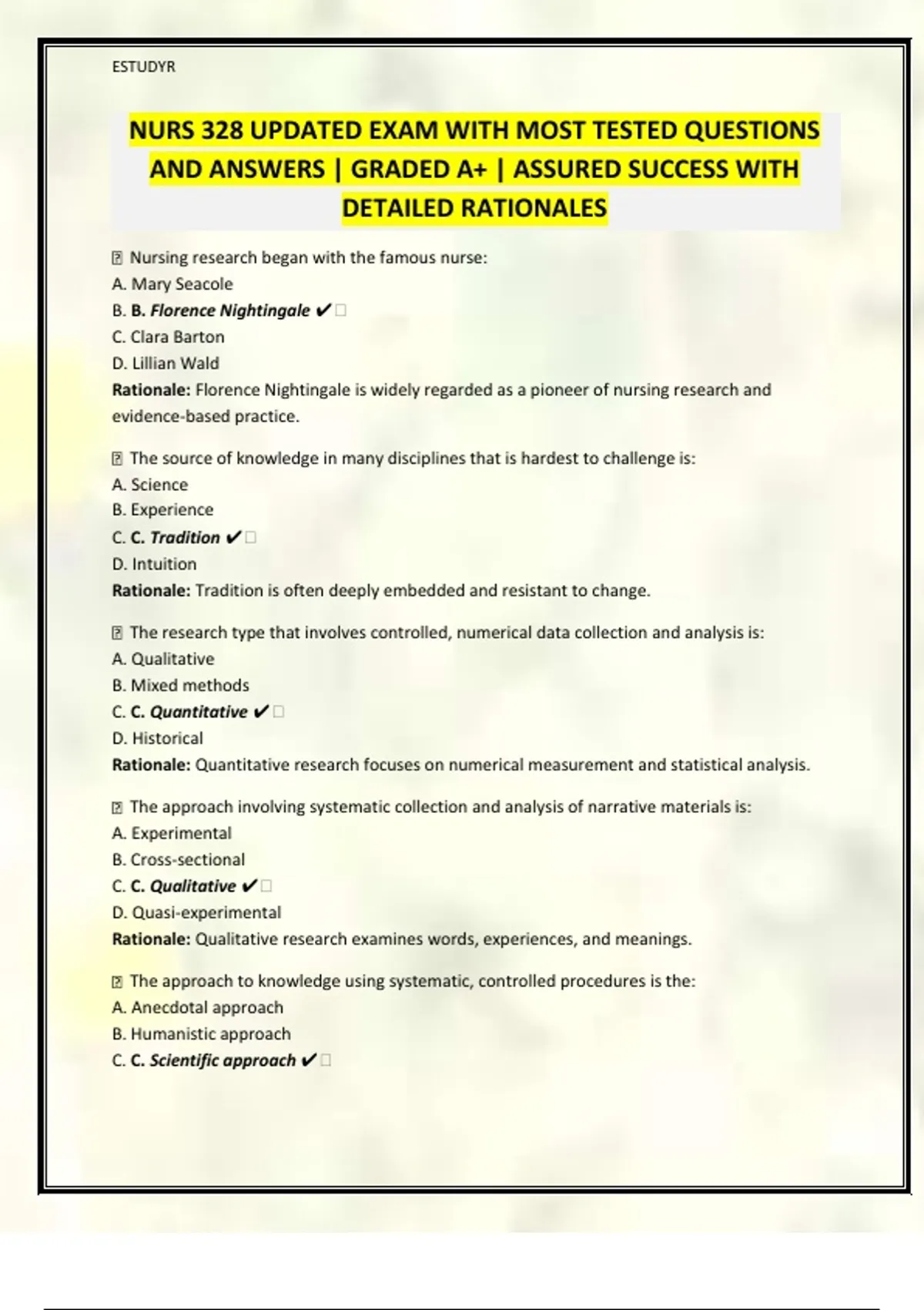 NUR 328 Package Deal 2025 MultiChoice Answered Exam Questions With Detailed Rationales