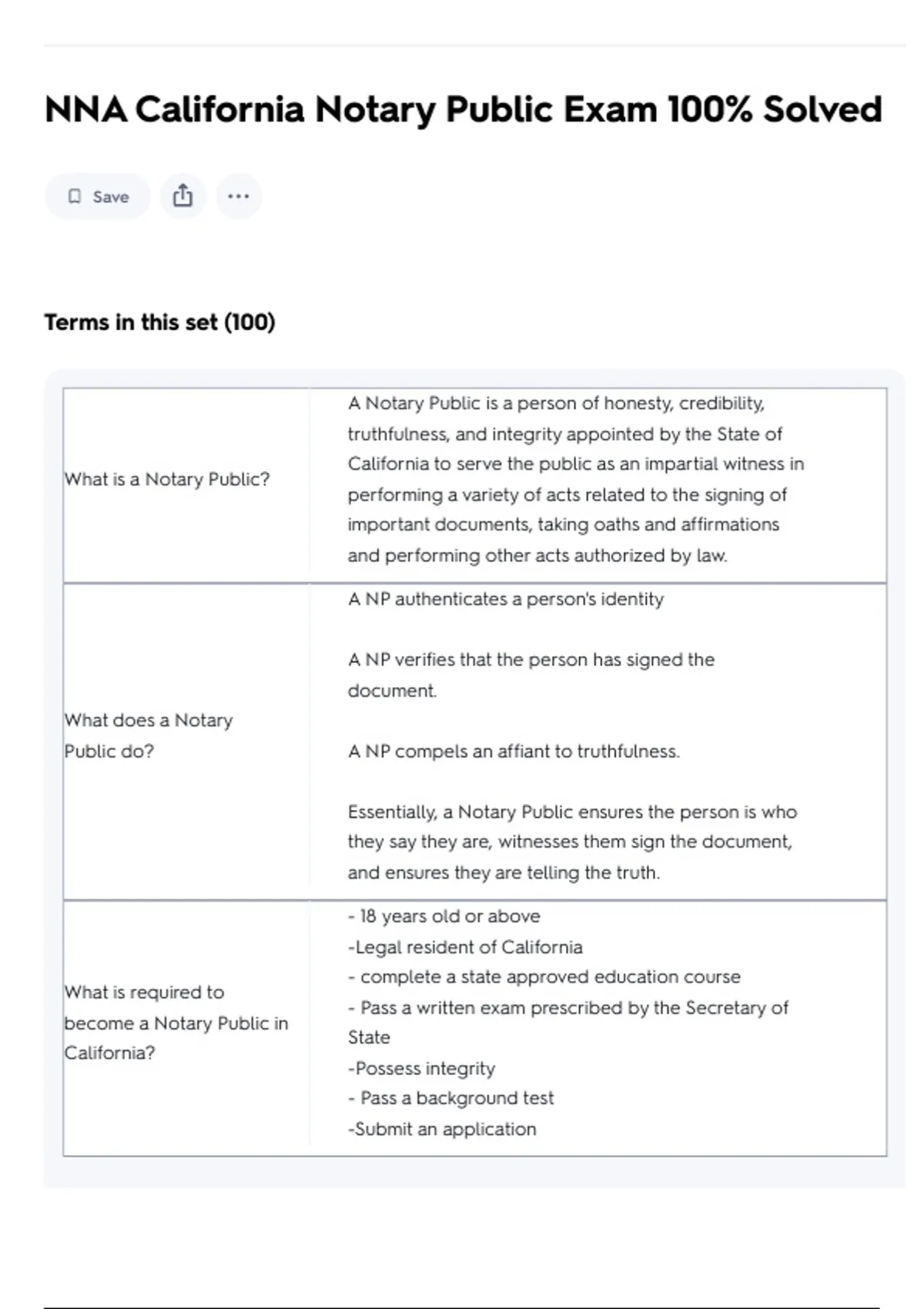Notary Signing Agent | NNA Course Questions with Correct Answers 3 Exam (elaborations) NNA Critical Documents | Questions with Correct Answers 4 Exam (elaborations) NNA - California Questions with Correct Answers 5 Exam (elaborations) NNA - Study Guide Questions with Correct Answers 6 Exam (elaborations) NNA Notary Quick Start | Questions with
