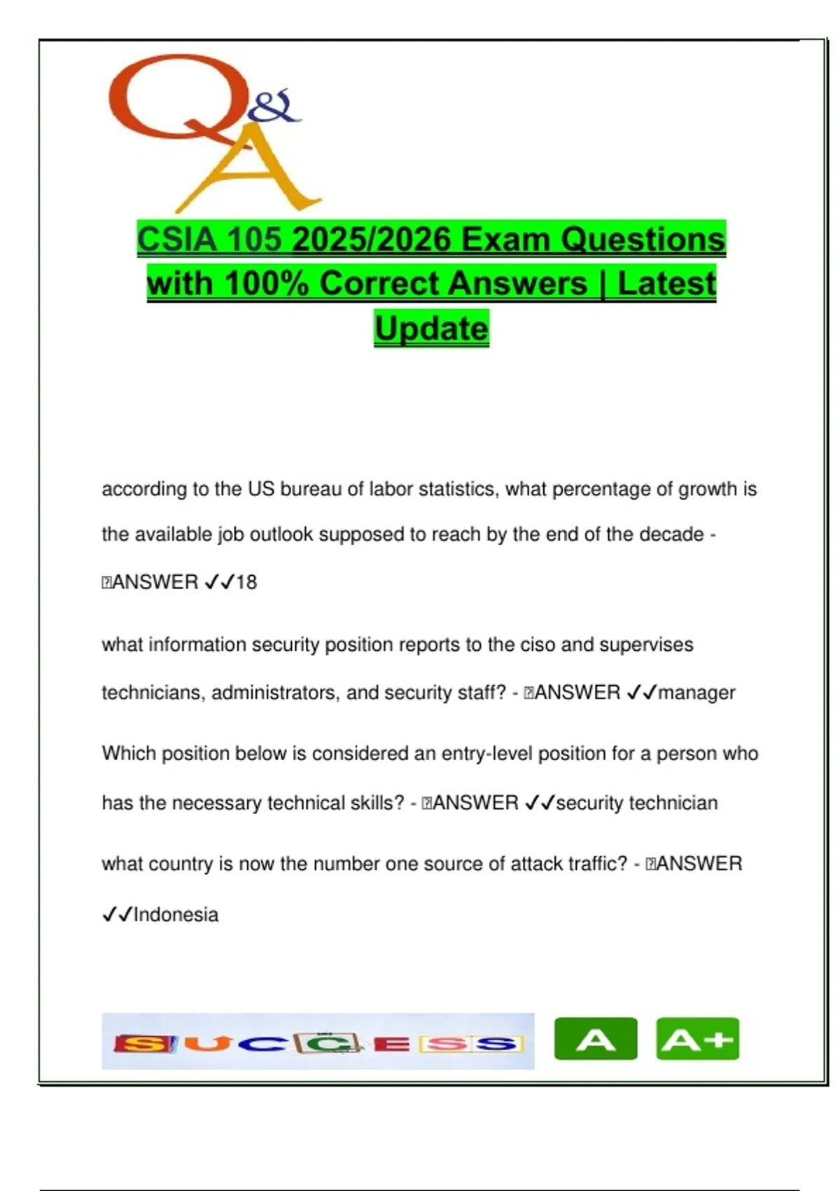 CSIA 105 – Cybersecurity Foundations | 2025/2026 | 180+ Verified Q&A | Threat Actors, Cryptography, Malware, Regulations | UMGC