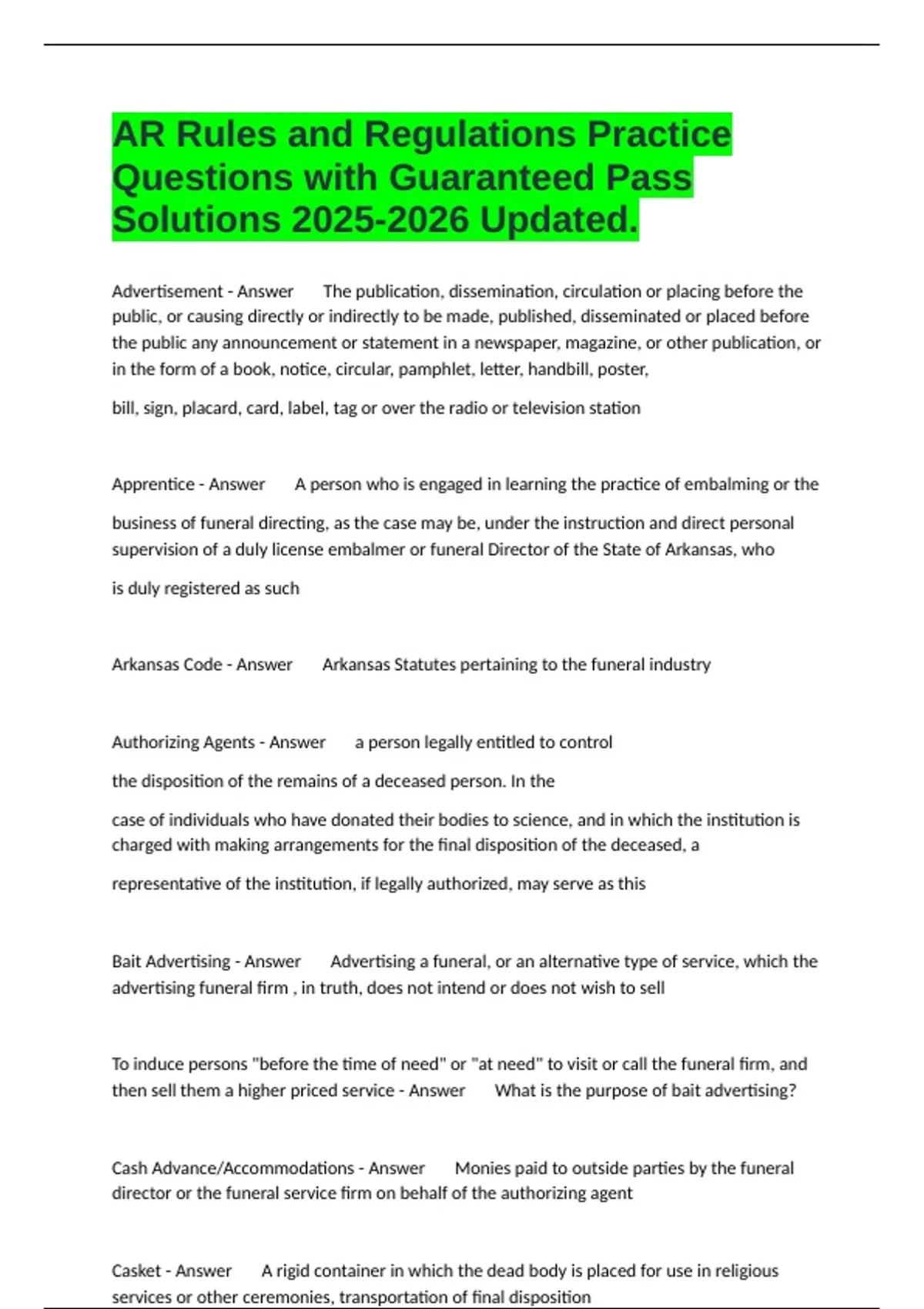 1 Exam (elaborations) Final-Arkansas State and Local Government Exam 2 Questions All Answered Correct Updated. 2 Exam (elaborations) Chapter-Arkansas General Insurance Laws Test Questions and All Correct Answers . 3 Exam (elaborations) Chapter 9: Arkansas Statutes, Rules, and Regulations for Life and Health Final Exam and Corre