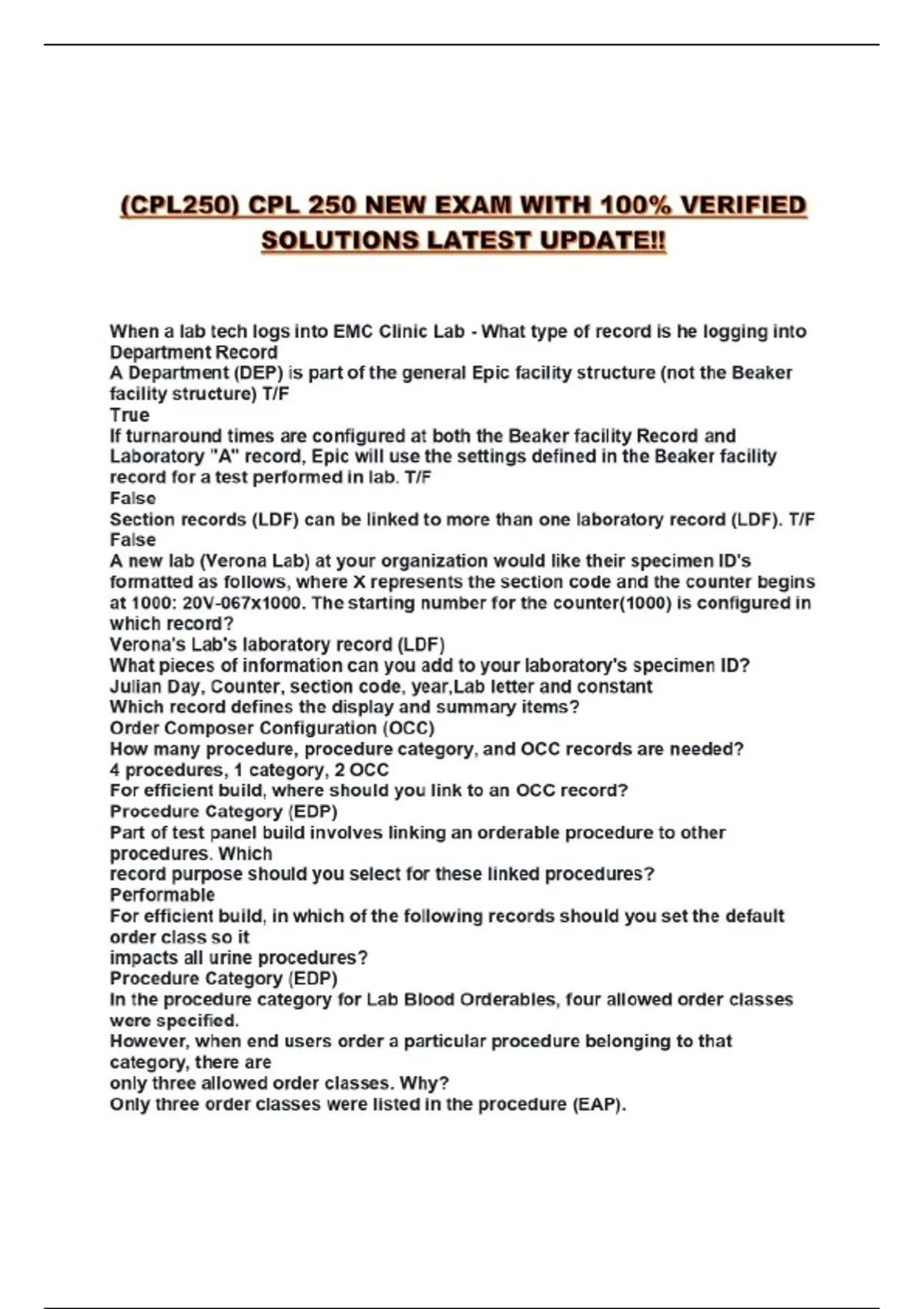 (CPL250) CPL 250 NEW EXAM WITH 100% VERIFIED SOLUTIONS LATEST UPDATE!!