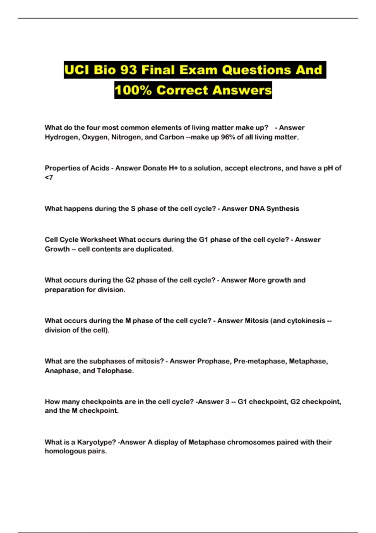 UCI BIO 93 Final Exam Questions And Accurate Solutions