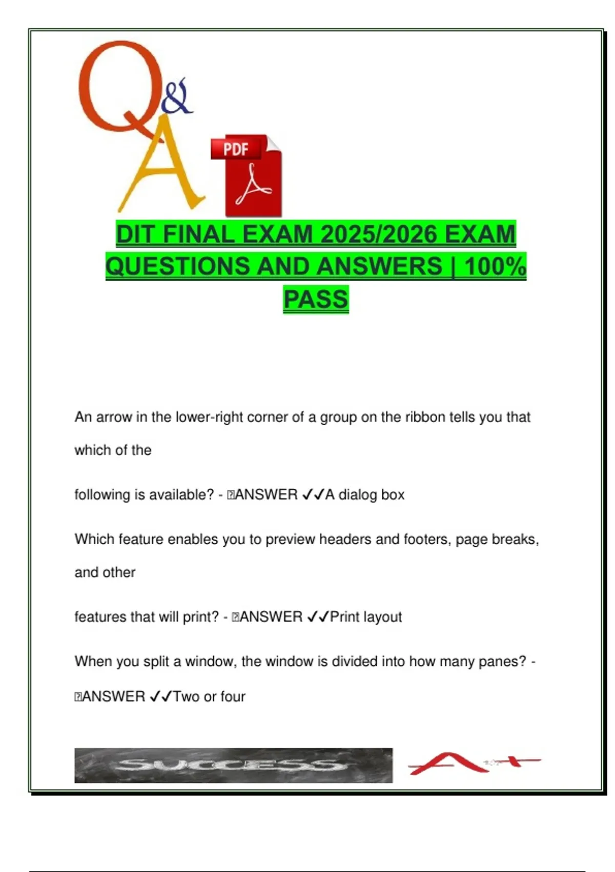 DIT Final Exam – 50+ Questions with Answers | Excel, Formulas, Layouts, Toolbar