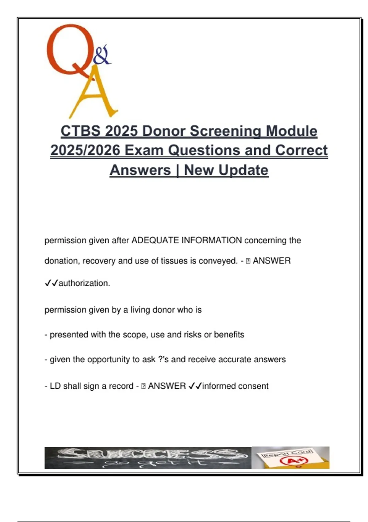 CTBS Donor Screening Module (80+ Questions) – Authorization, RCDAD Risk, Infectious Disease Testing | 2025/2026