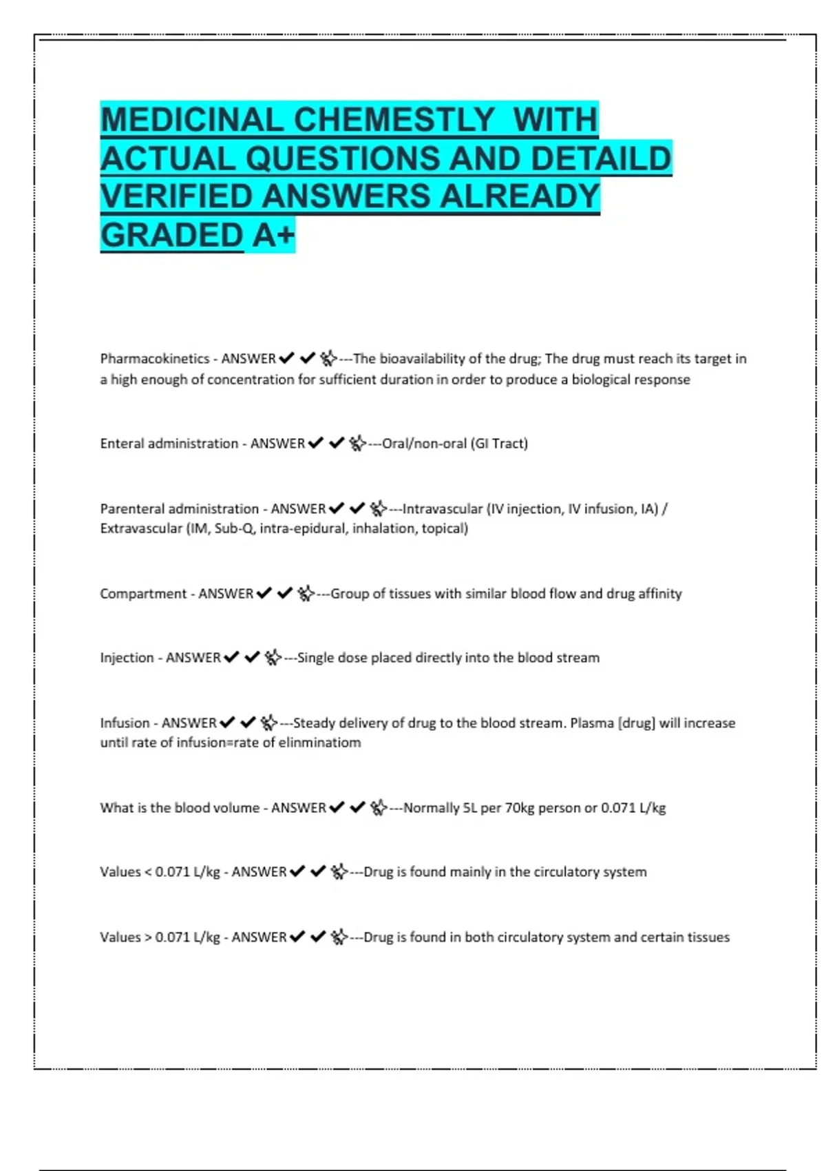 1 Exam (elaborations) Medicinal Chemistry 2025–2026 | Actual Questions with Detailed Verified Answers (Graded A+ 2 Exam (elaborations) Medicinal Chemistry 1st Year 2025–2026 | Fully Explained Study Guide 3 Exam (elaborations) Medicinal Chemistry Exam 1 | Accurate Questions, Answers & Detailed Explanations 2025–2026