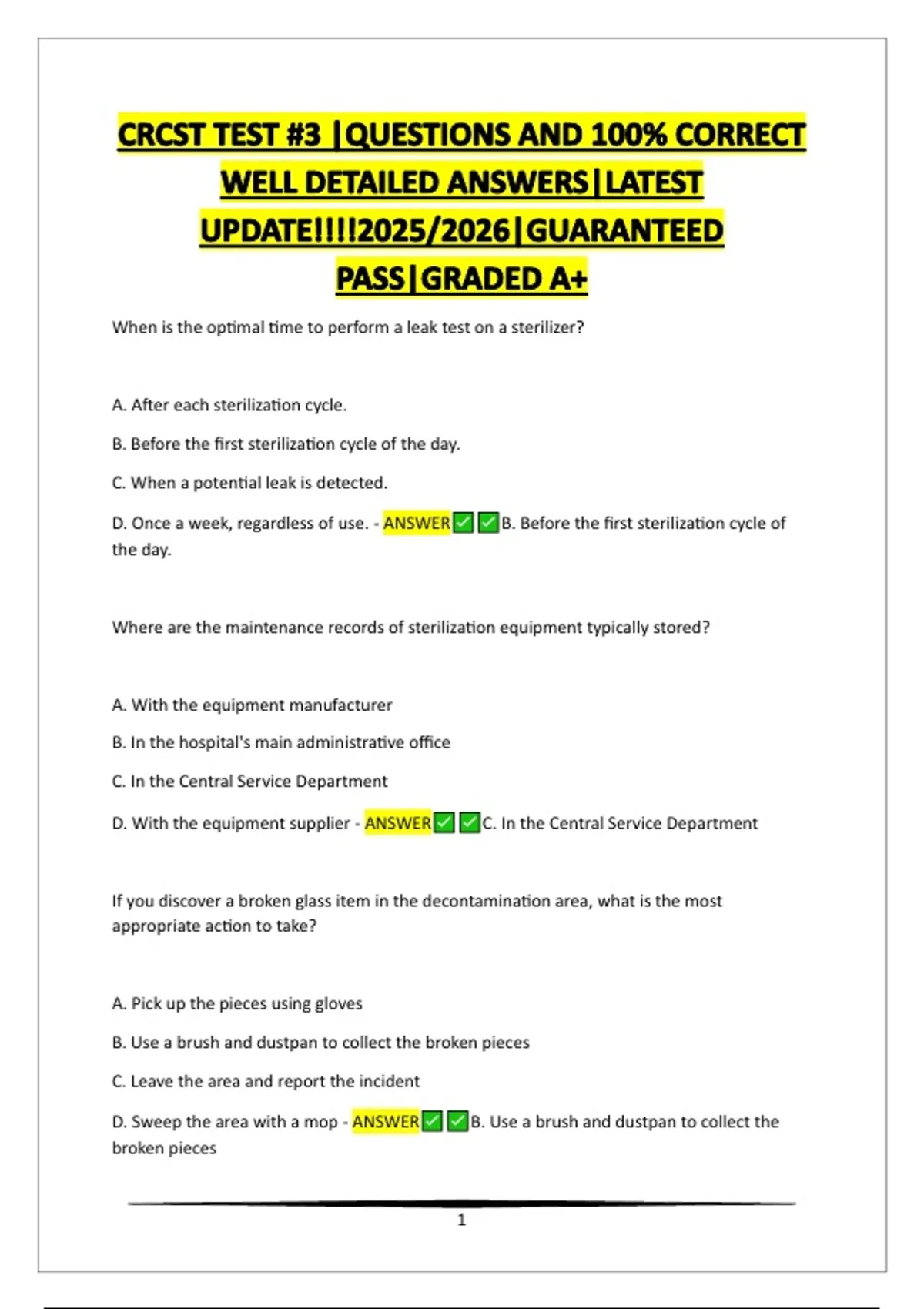 CENTRAL SERVICE[STERILIZATION TECHNICIANS] EXAM BUNDLE|QUESTIONS AND 100% CORRECT WELL DETAILED ANSWERS|LATEST UPDATE!!!!2025/2026|GUARANTEED PASS|GRADED A+