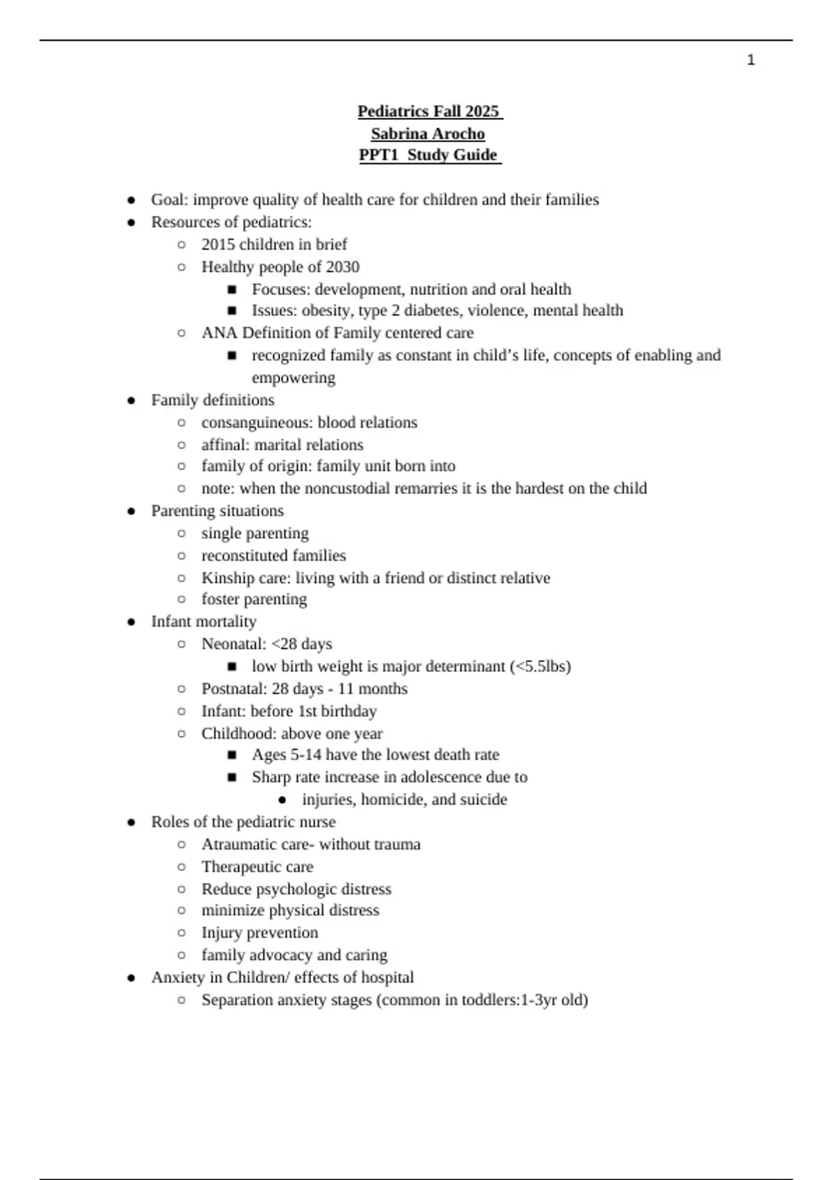 Complete Peds Midterm Study Guide