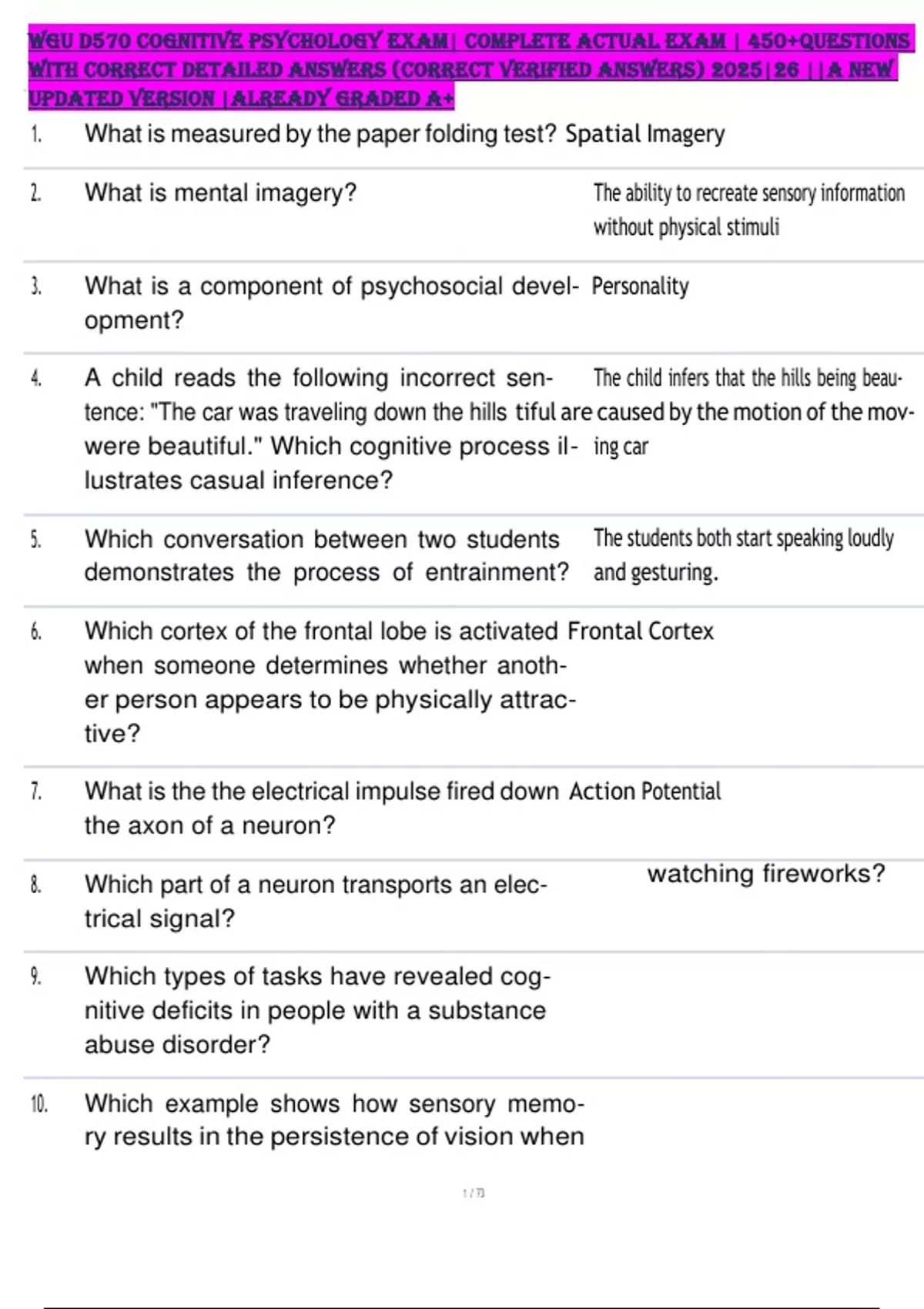 STUDY|BUNDLE >> WGU D570 COGNITIVE PSYCHOLOGY EXAM|WGU D570 COGNITIVE PSYCHOLOGY OA AND PRE ASSESSMENT EXAM