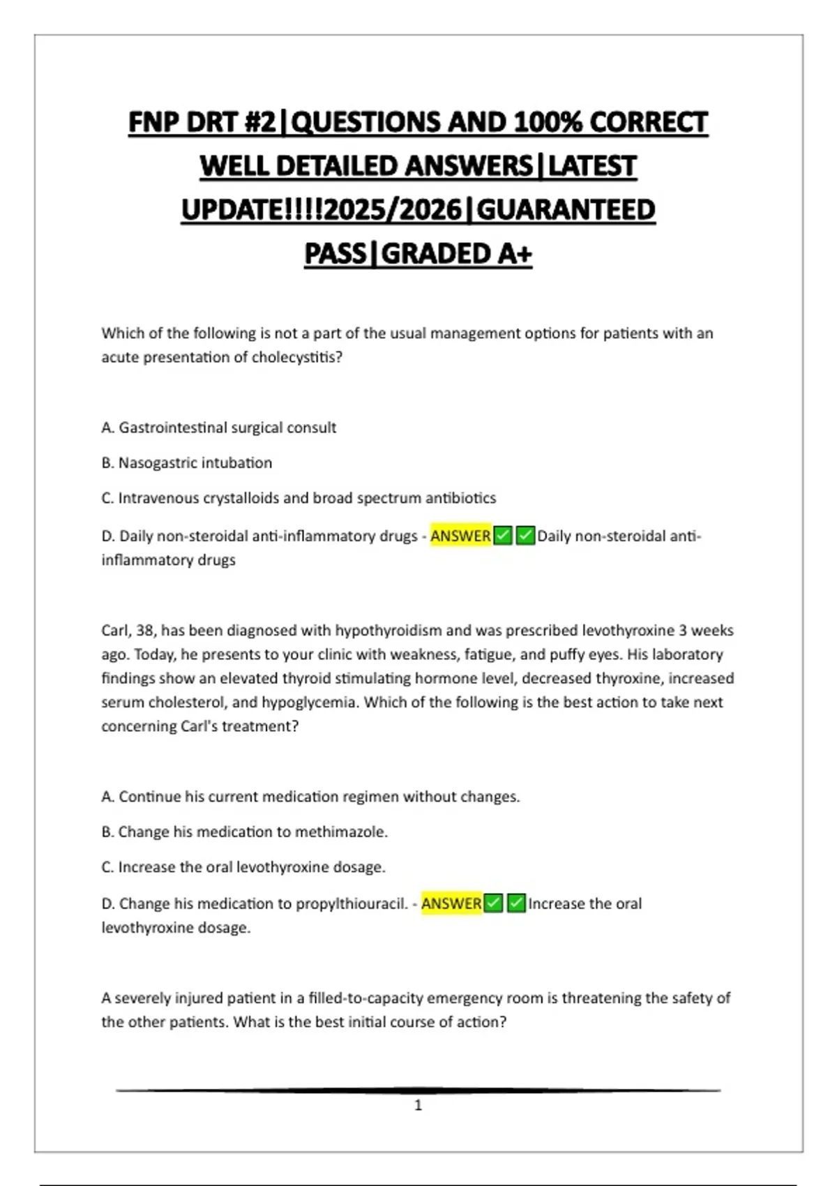 FNP DRT #2|QUESTIONS AND 100% CORRECT WELL DETAILED ANSWERS|LATEST UPDATE!!!!2025/2026|GUARANTEED PASS|GRADED A+