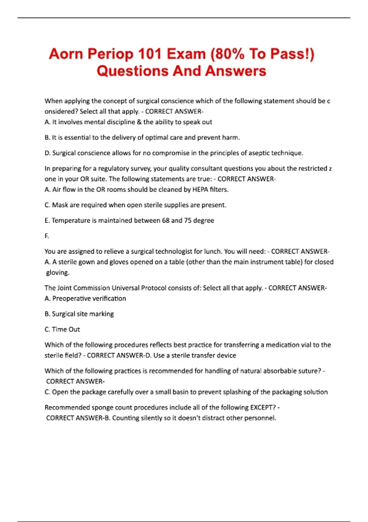Aorn Periop 101 Exam (80- To Pass!) Questions And Answers.