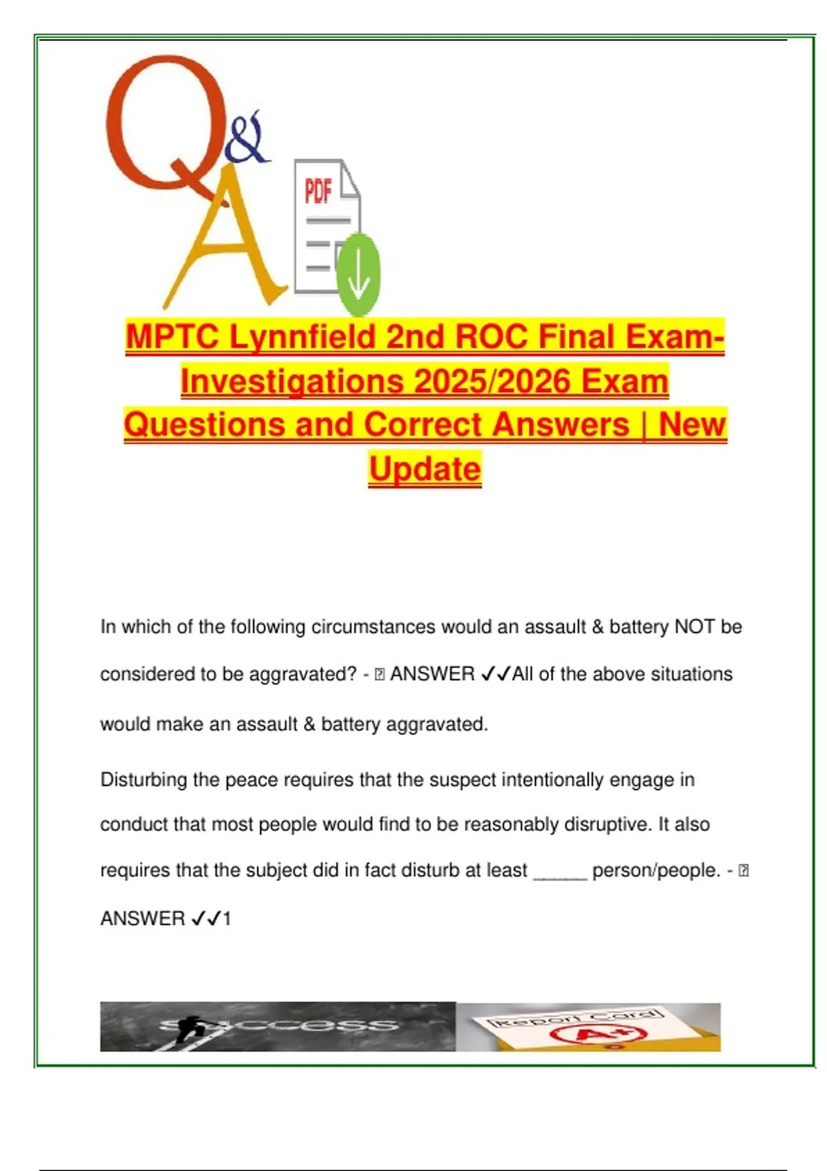 MPTC LYNNFIELD 2ND ROC EXAM COMPLETE PACKAGE DEAL