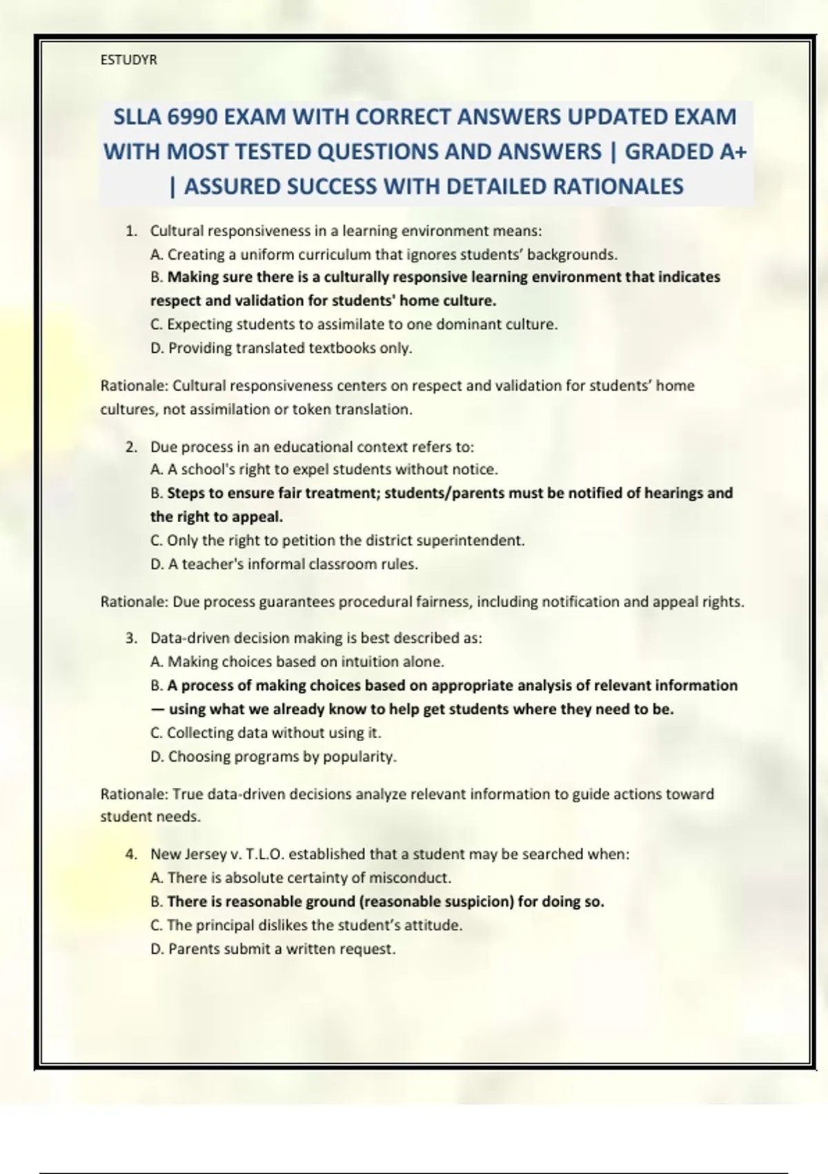 SLLA 6990 Package Deal 2025/26 QUESTIONS AND ANSWERS